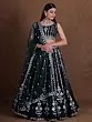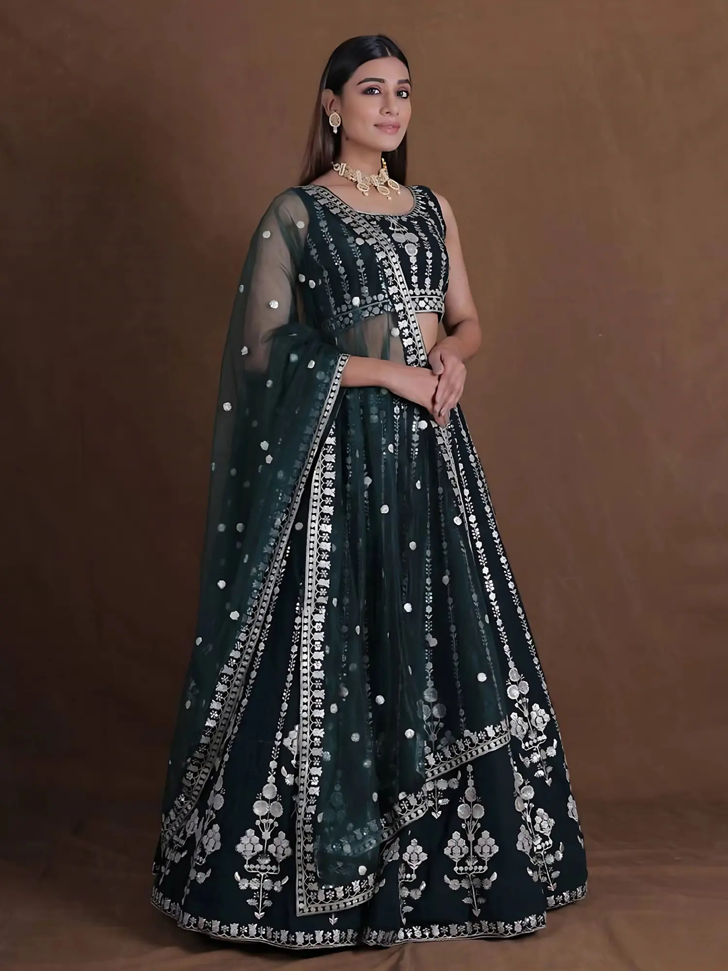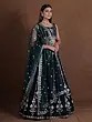 Bottle-Green Net Beads and Golden Thread Embroidery Lehenga Choli with Cutwork Dupatta