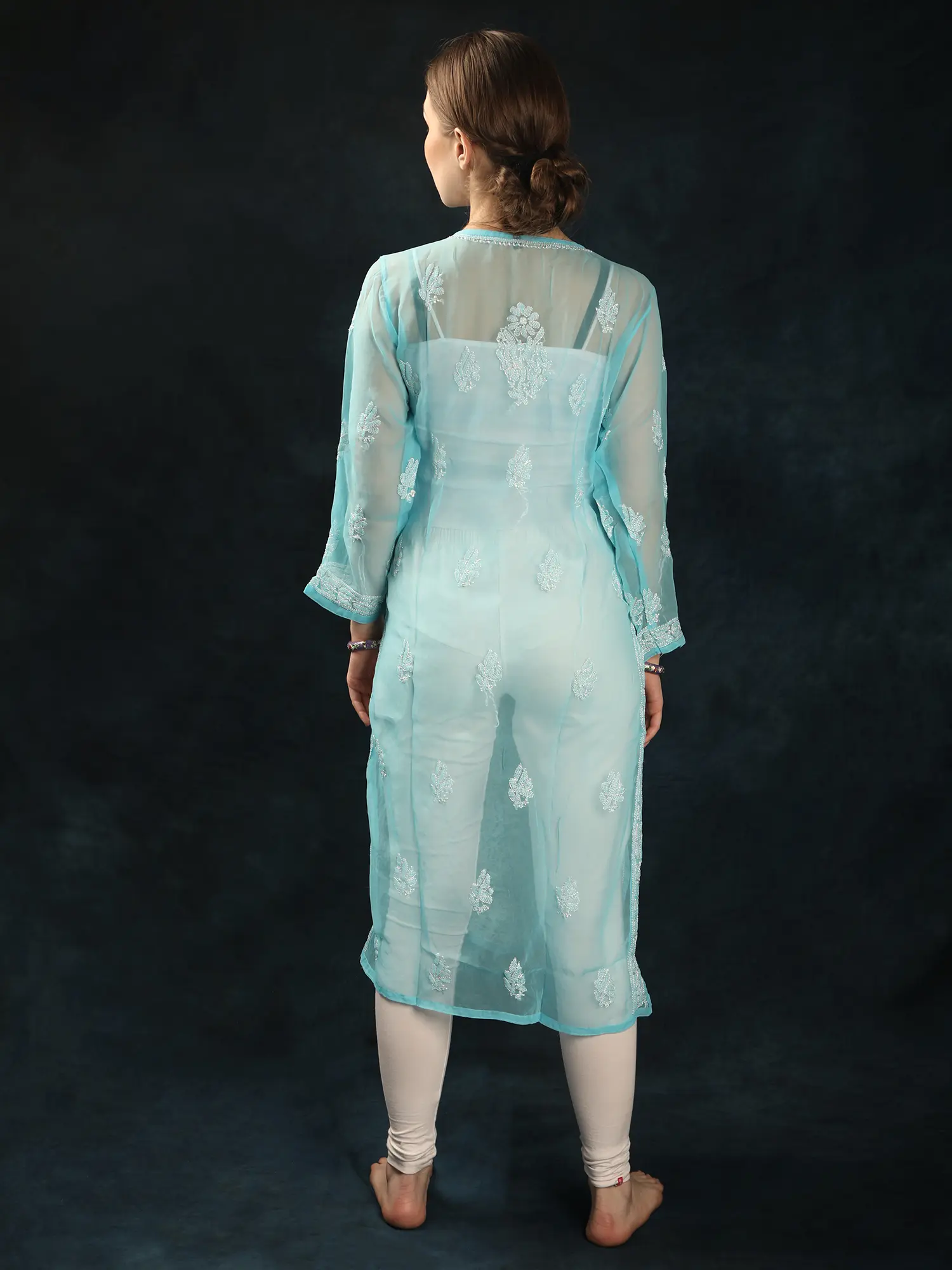Georgette Paisley Diaphanous Long Kurti with Lukhnavi Chikan Embroidery by Hand