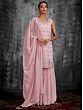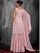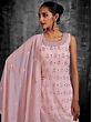 Become a vision of subtle beauty dressed in this designer georgette salwar kameez. The soft hues of the fabric elevate the charm of the georgette, which fits and flows gracefully. The kurti is adorned with classic Indian embroidery, creating floral motifs all over, paired with a comfy palazzo and matching designer dupatta, crafting a head-turner for this festive season.