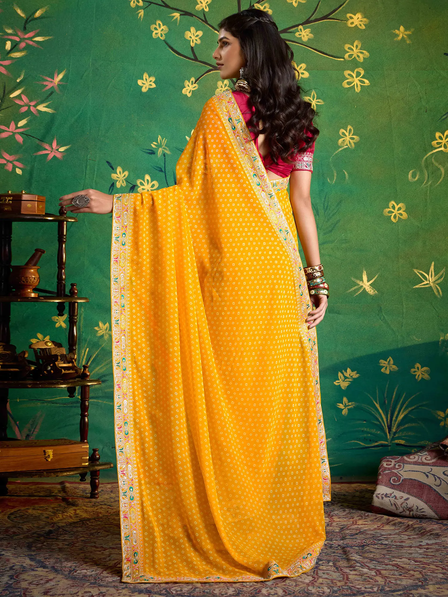 To preserve the vibrant colours and intricate details, we recommend gentle handwashing in cool water with a mild detergent. Avoid harsh scrubbing or wringing; instead, allow it to air dry away from direct sunlight. With proper care, this exquisite piece will remain a cherished and radiant part of your wardrobe for years to come, a testament to its lasting quality and artisanal value.