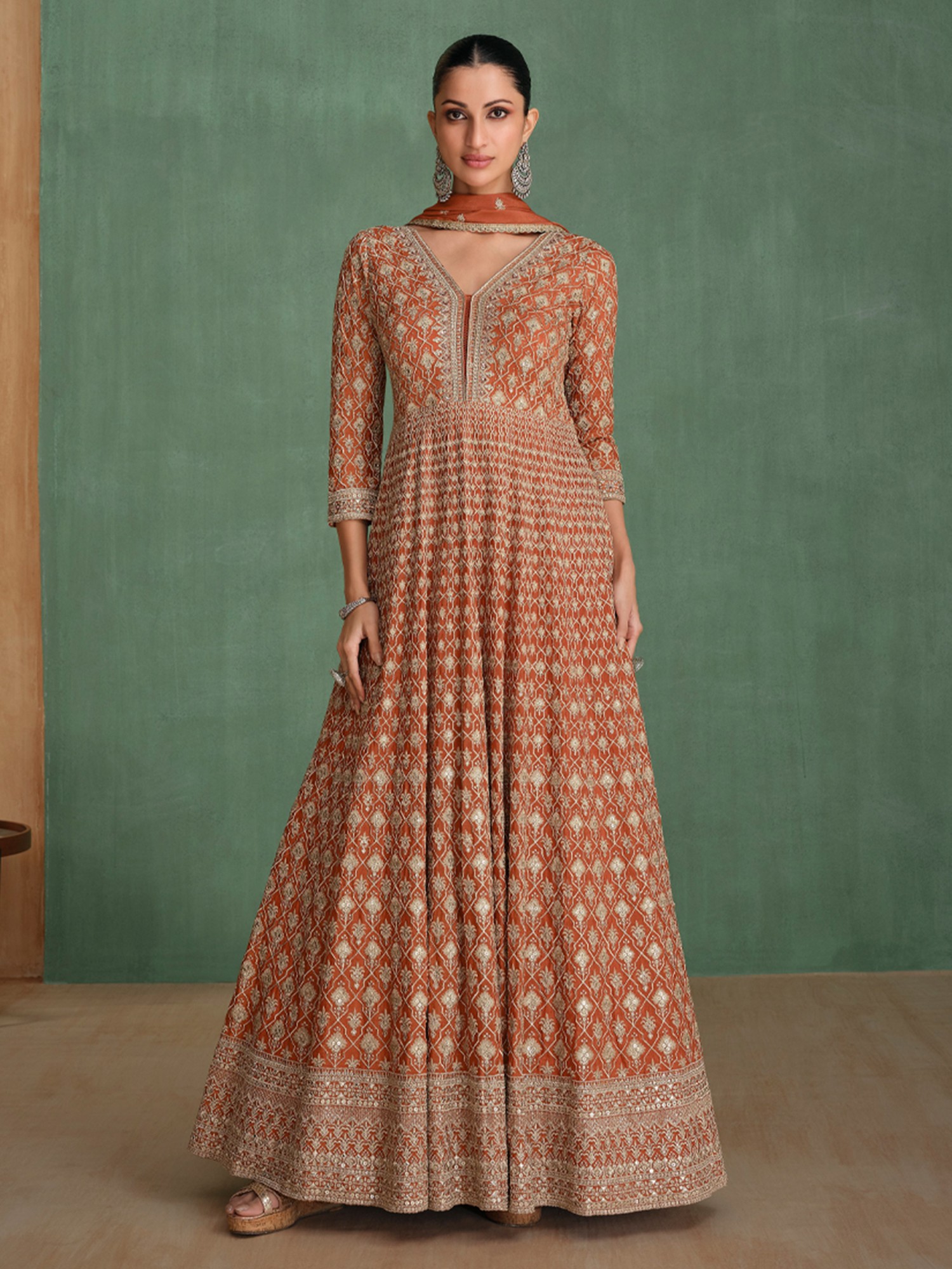Stunning Embellished Heavy Sequins And Embroidery Work Georgette Anarkali Gown With Matching Dupatta