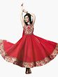 Geranium-Red Anarkali Suit with Floral Print and Gota Border