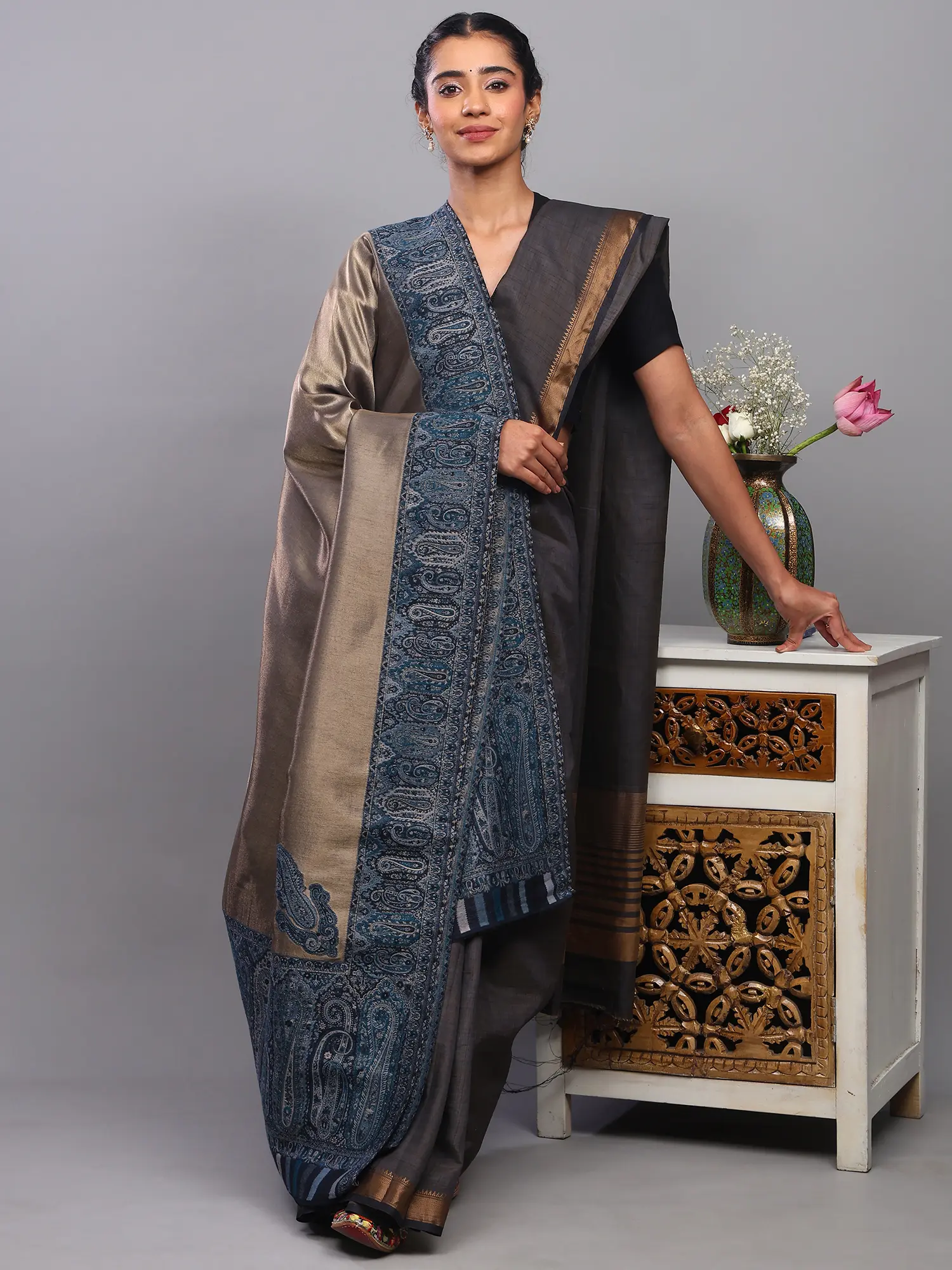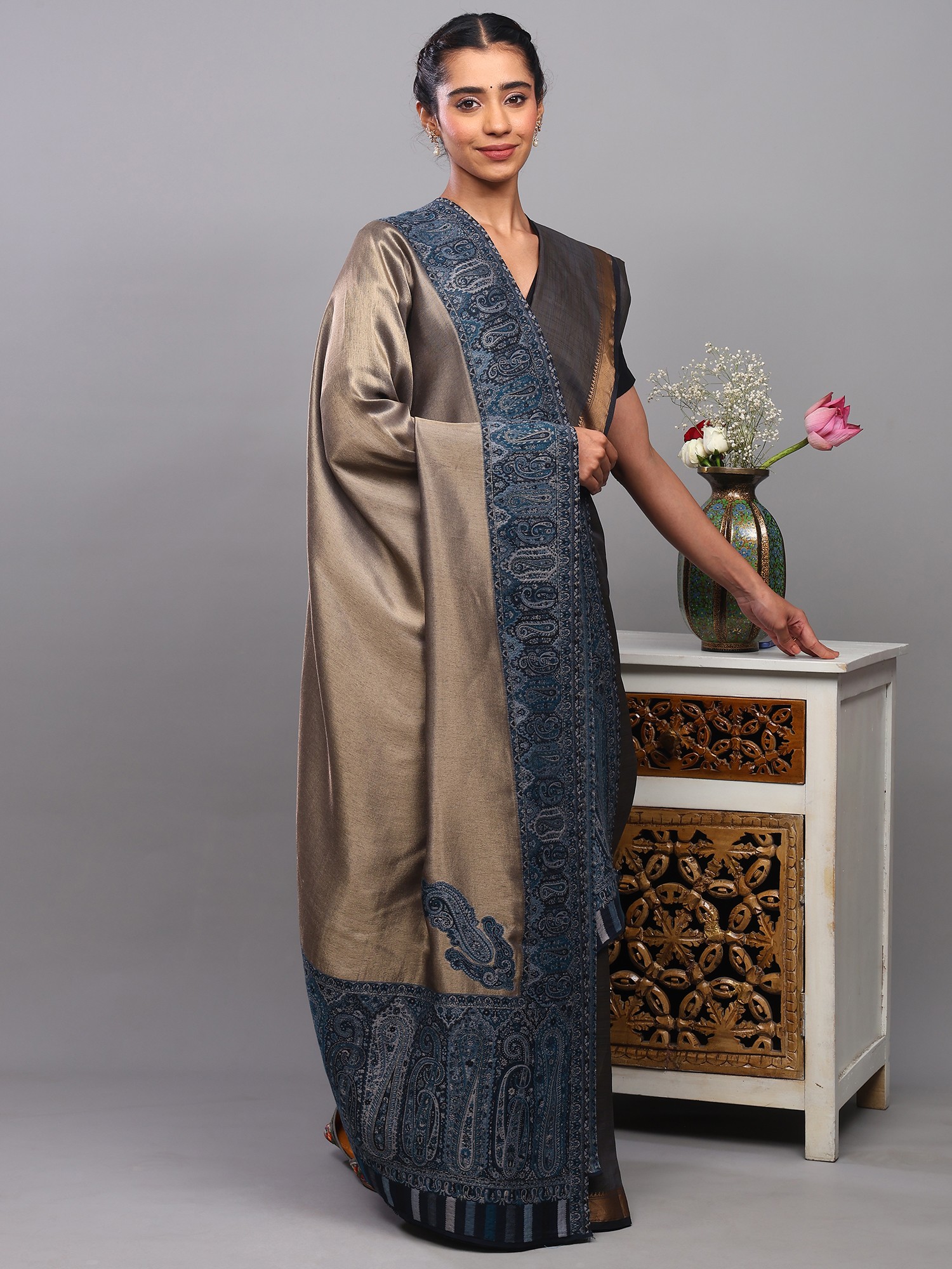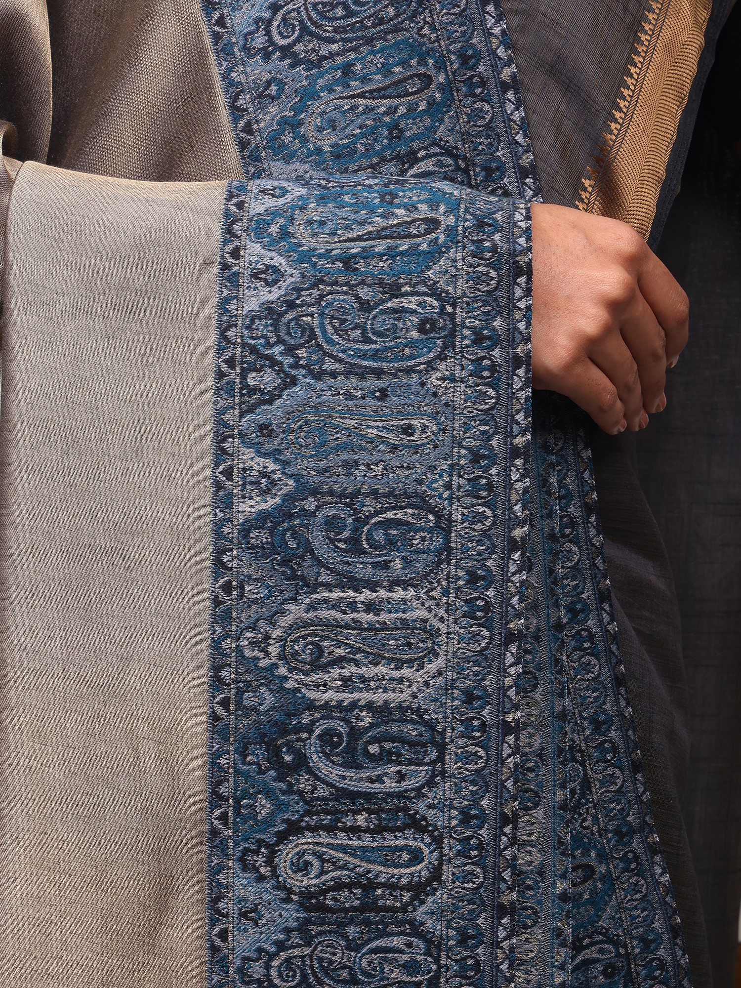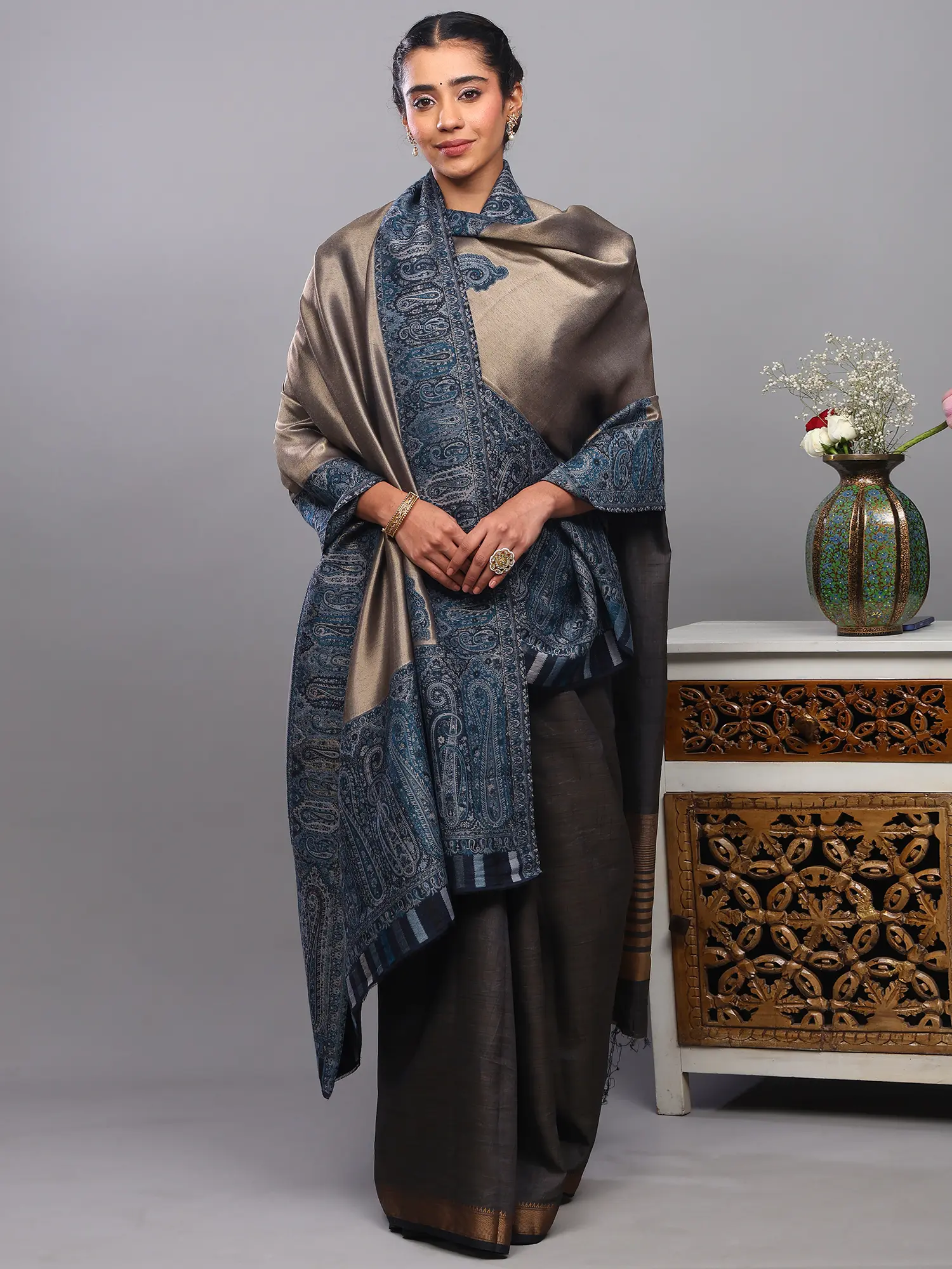Pure Wool Shawl from Amritsar with Aari Embroidered Paisleys on Border