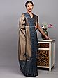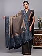 Amber-Green Shimmer Pure Wool Shawl with All-Over Weave in Zari Thread