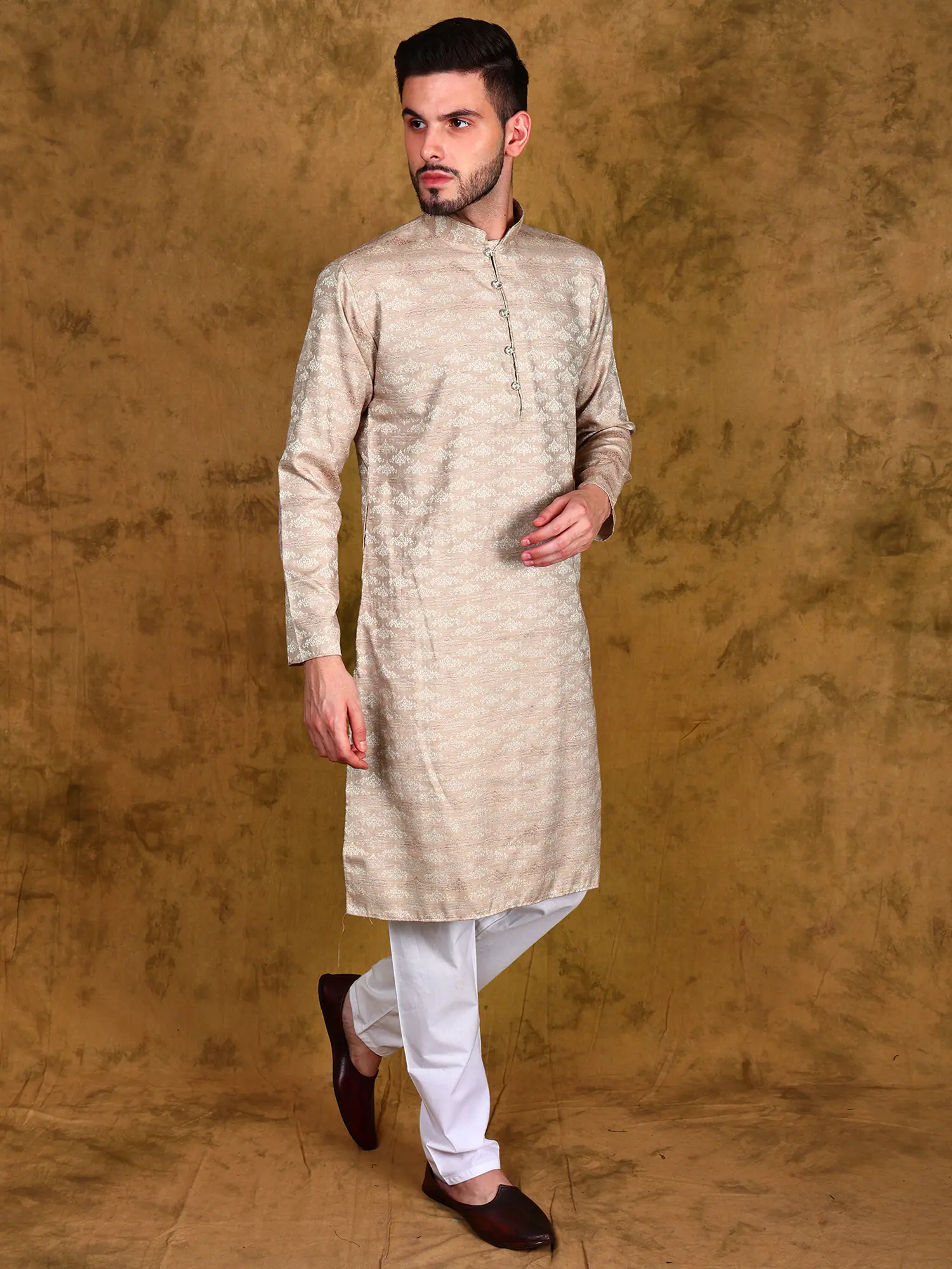 Wedding Kurta Pajama Set with All-Over Woven Floral Motifs in Self