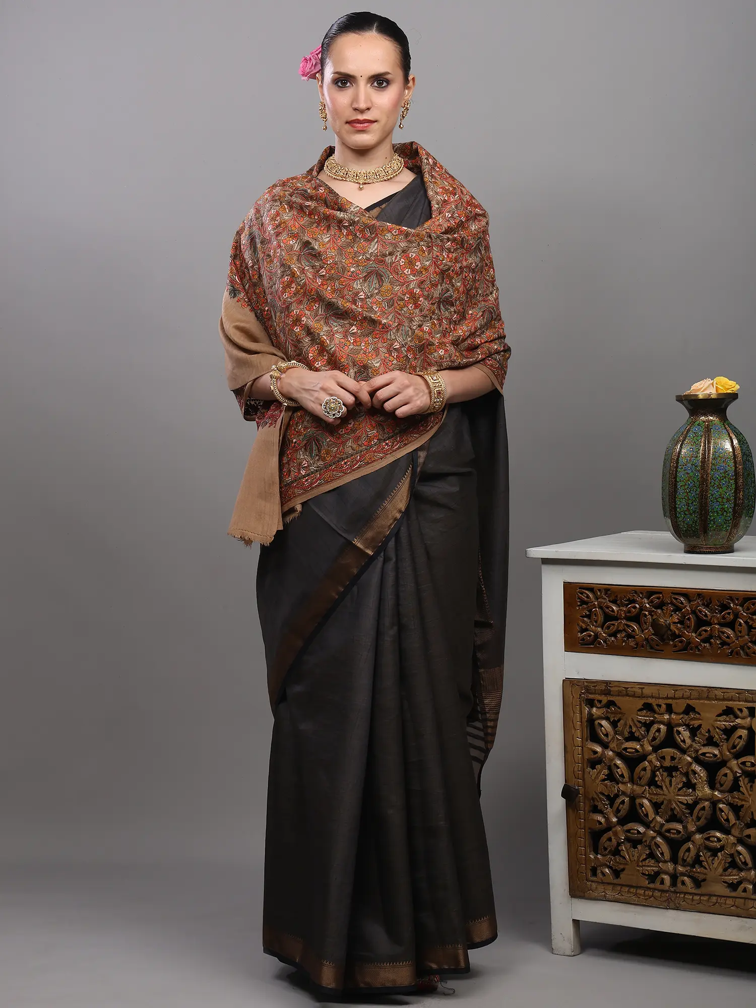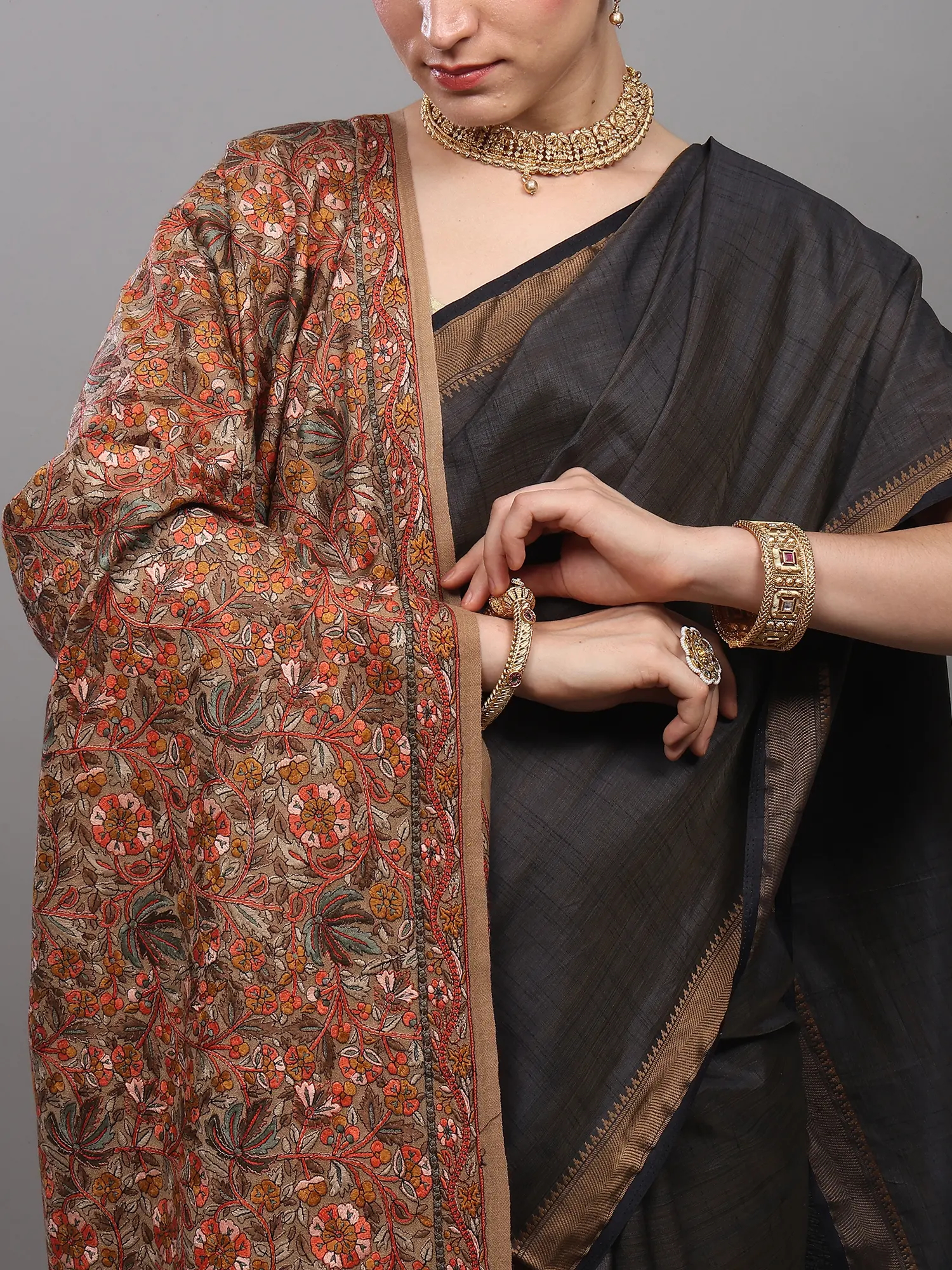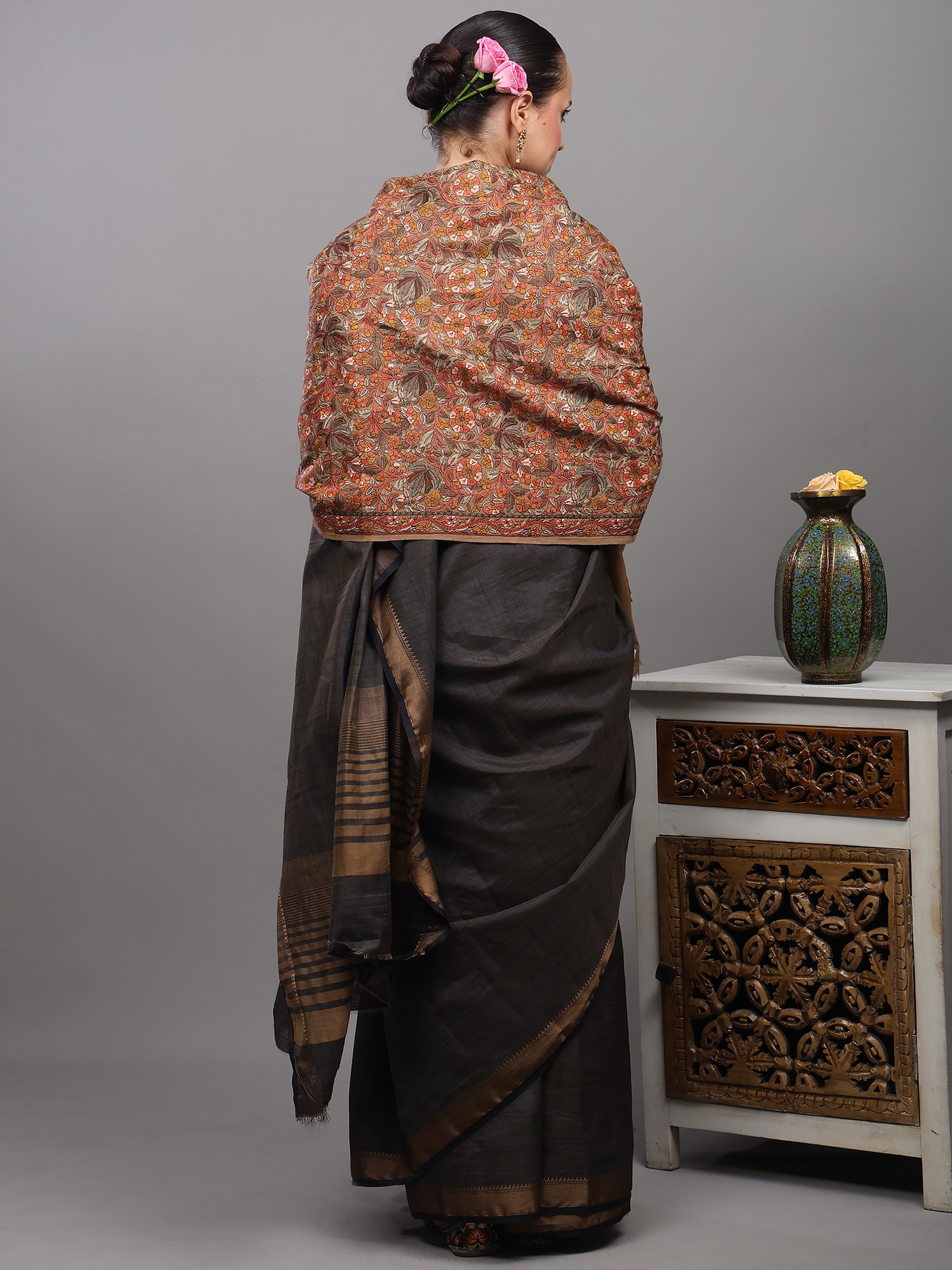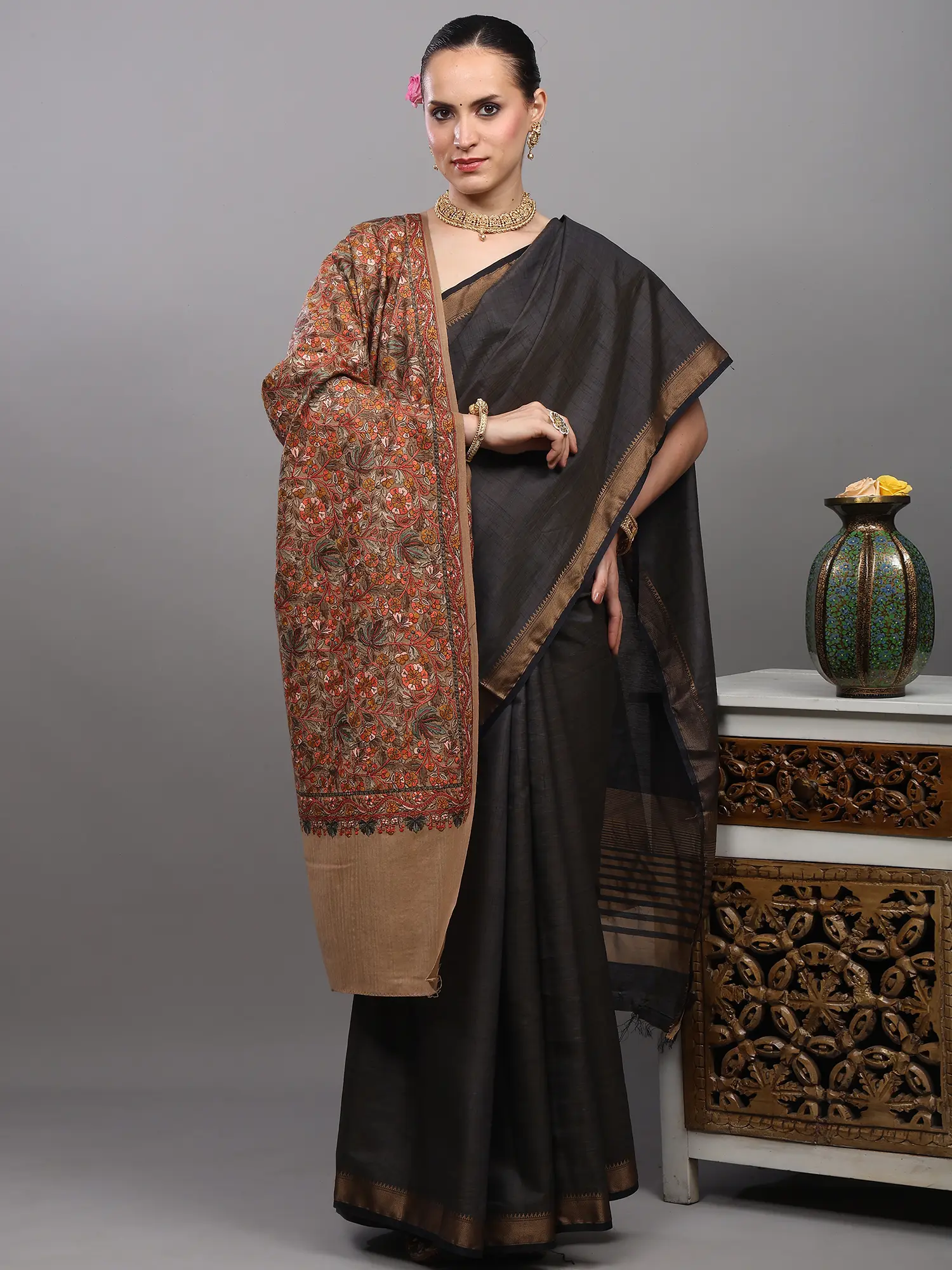 Stole from Amritsar with Aari Embroidered Flowers All-Over