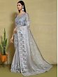 Glacier Grey Summer Wear Floral Embroidered Net Organza Satin Silk With Blouse
