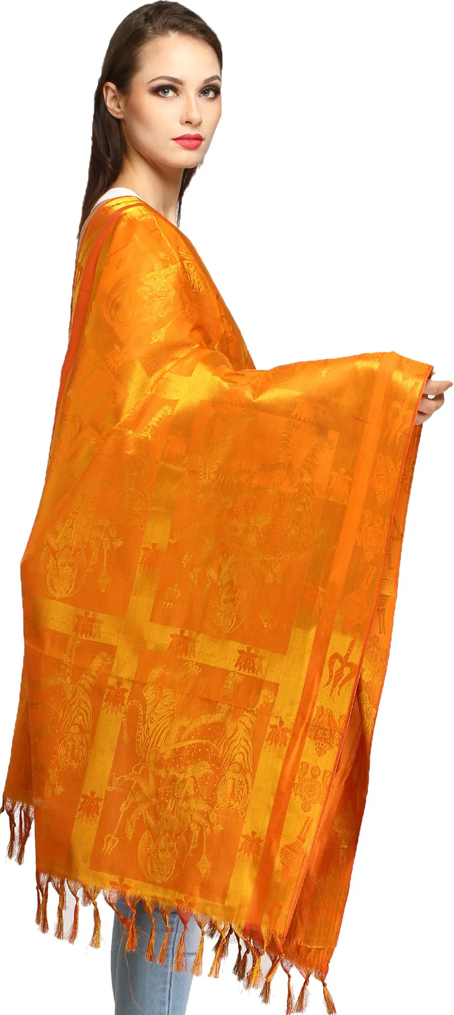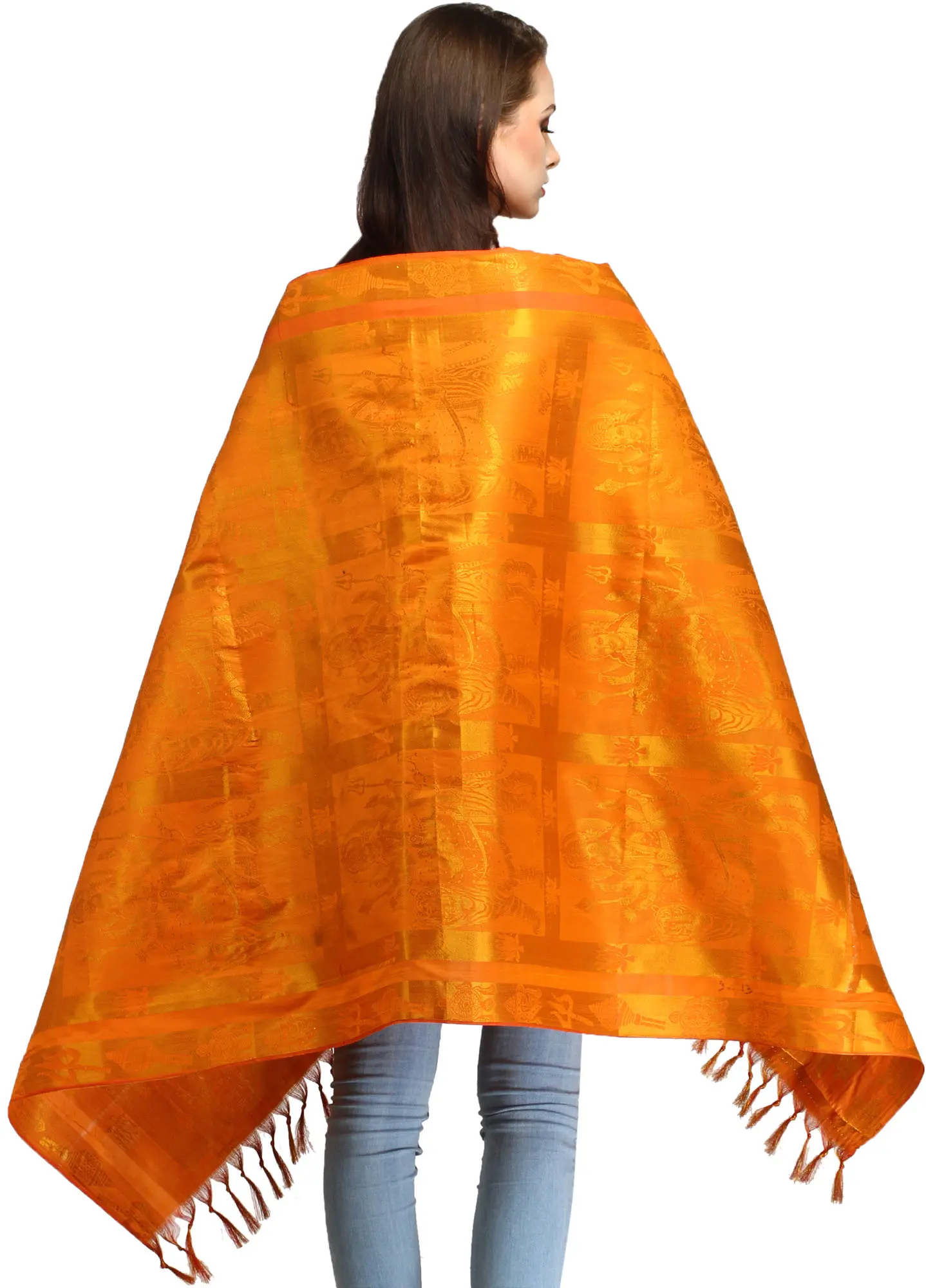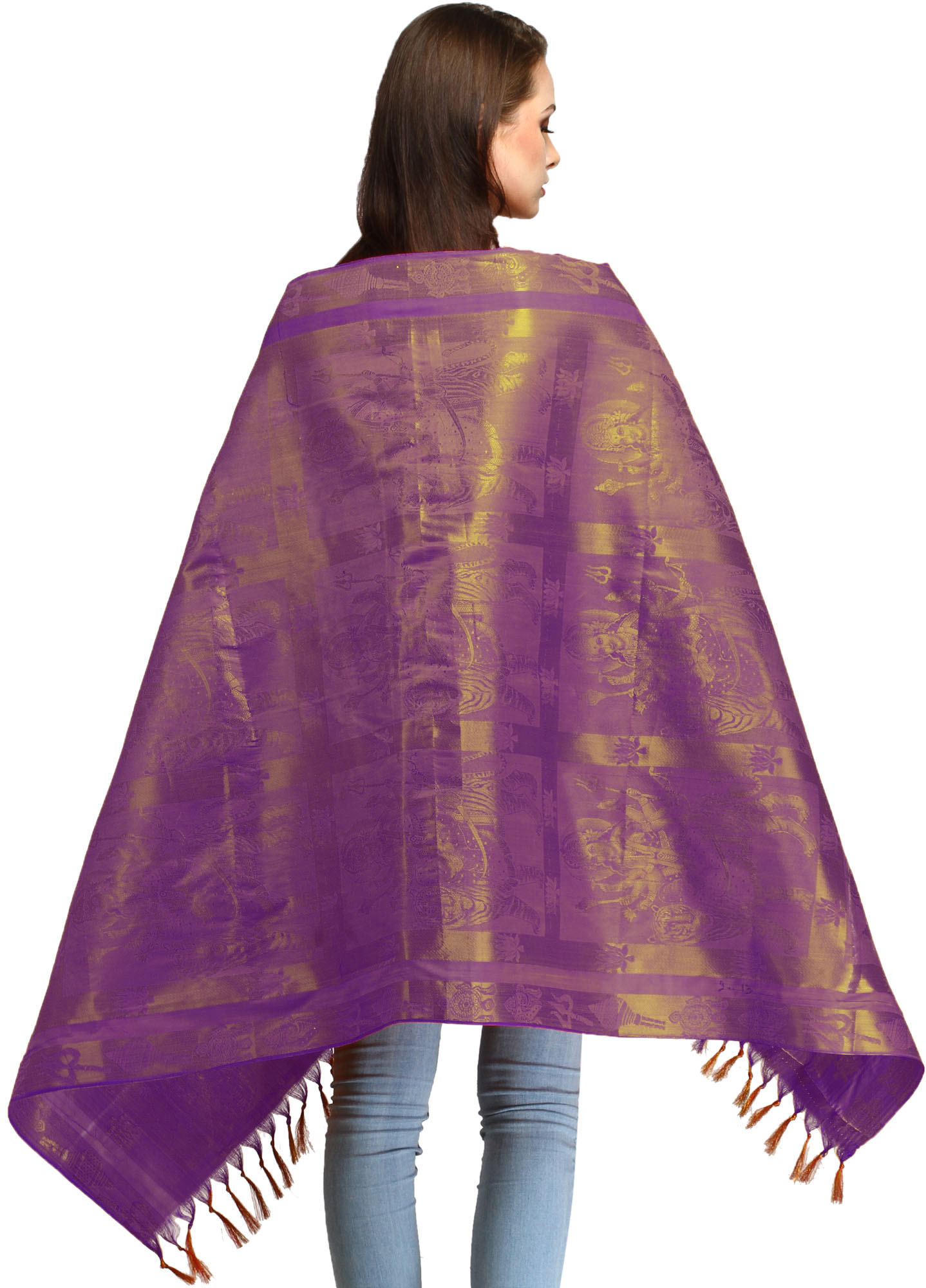 Goddess Durga Brocaded Prayer Shawl from Tamil Nadu