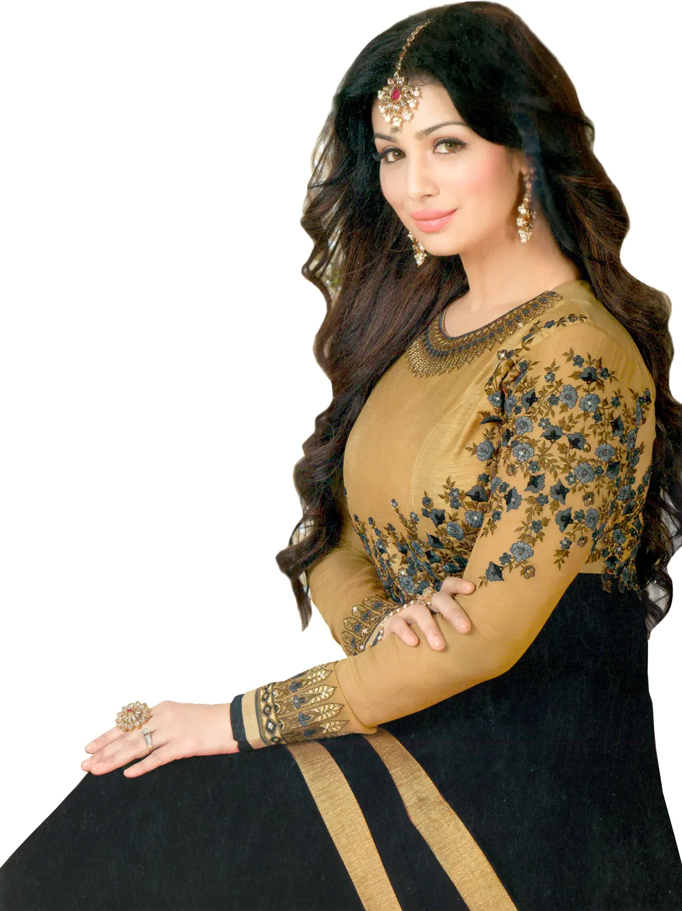 Fall-Leaf Anarkali Kameez Suit with Thread Weave on Neck and PatchWork