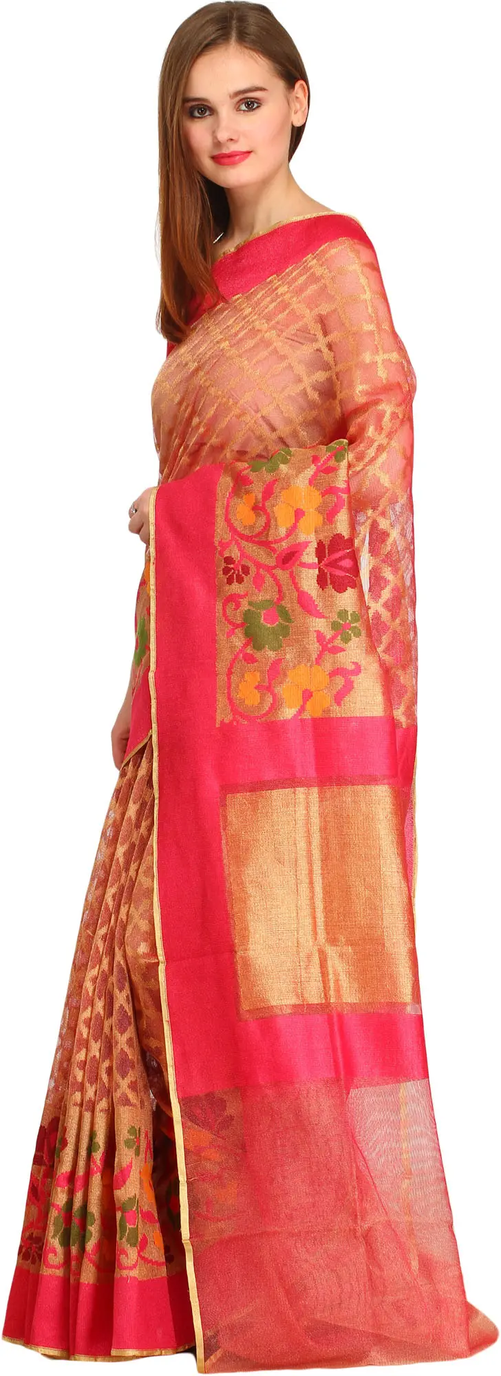 When it comes to choosing from a variety of elegant sarees to be worn on any special occasion or big event, a Banarasi saree is always the top pick for all women. As the name suggests, a Banarasi saree originates from the ancient city of Varanasi (formerly known as Banaras) in Uttar Pradesh, India. These sarees are made of finely woven high-quality silk and bear opulent embroidery with metallic threads. The main characteristic feature of a Banarasi saree is gold and silver brocade or zari work upon the silk fabric. The end of the saree called Pallu is heavily decorated with the work of embroidered designs and sometimes with mina work. The making process of a Banarasi silk saree is elaborate and a lot of manual labor and dedication goes into it.