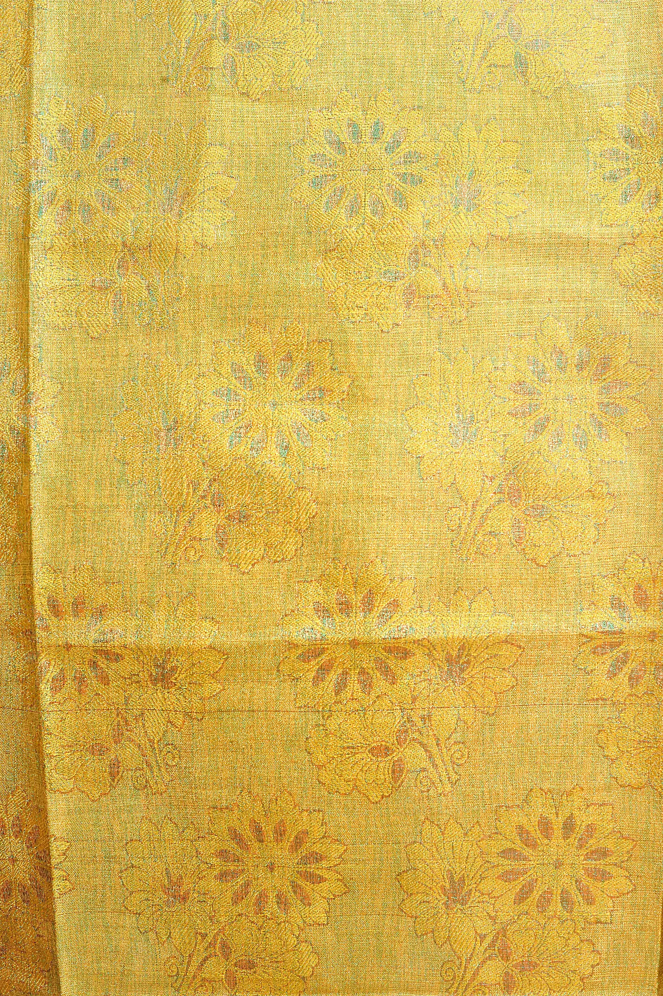 Cadmium-Green Brocaded Shawl from Tamil Nadu with Woven Flowers