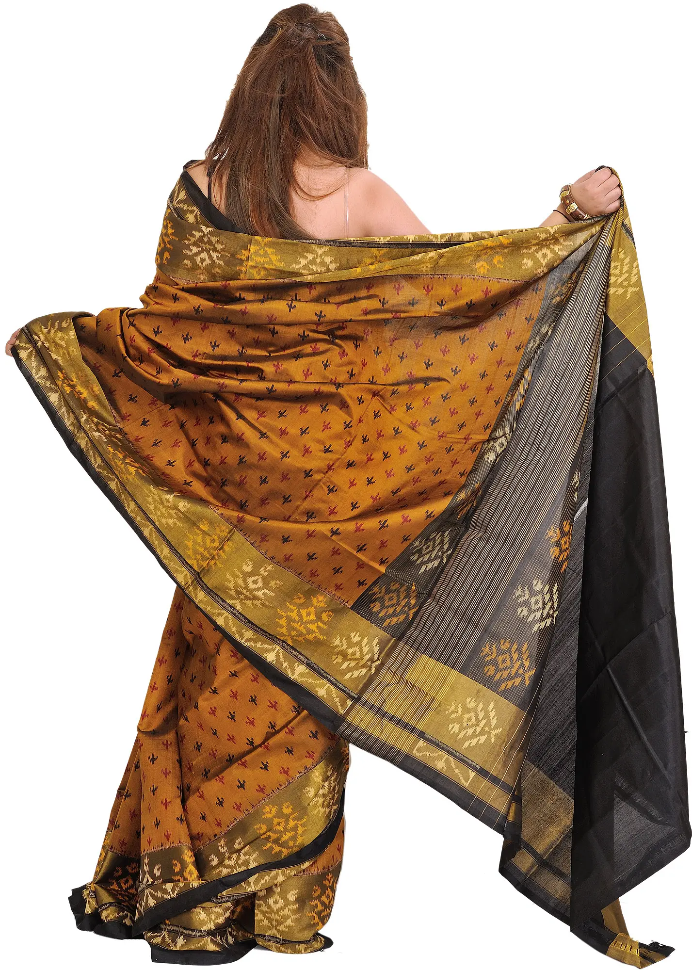 Jet-Black Pochampally Sari with Ikat Weave on Border and Anchal