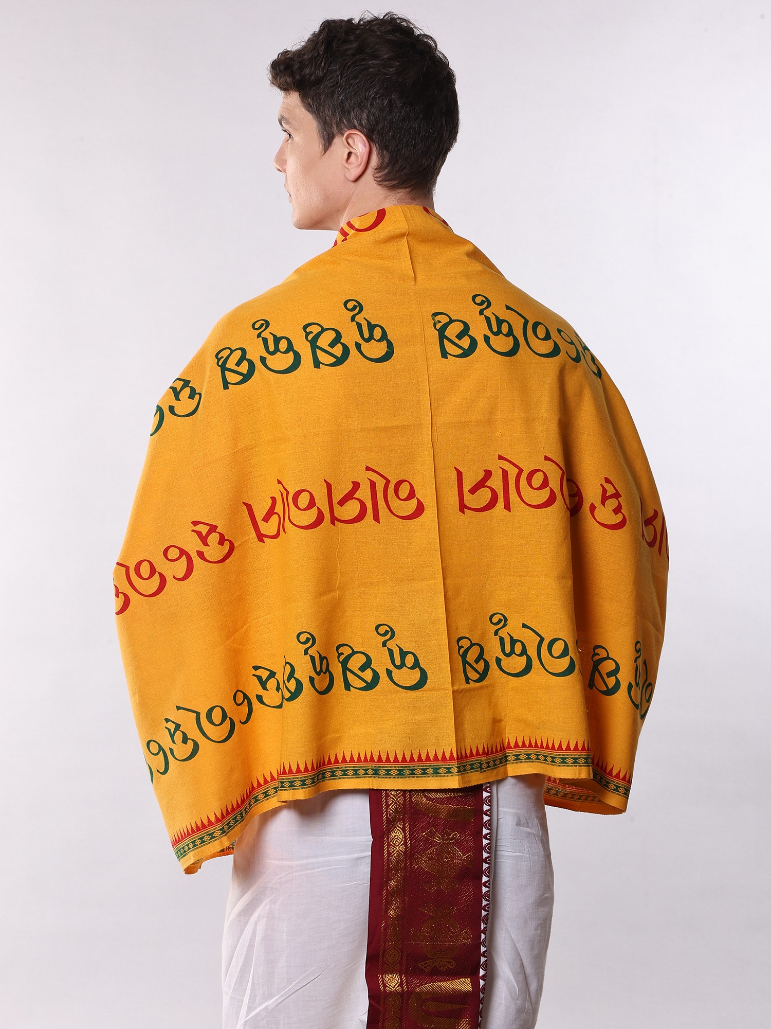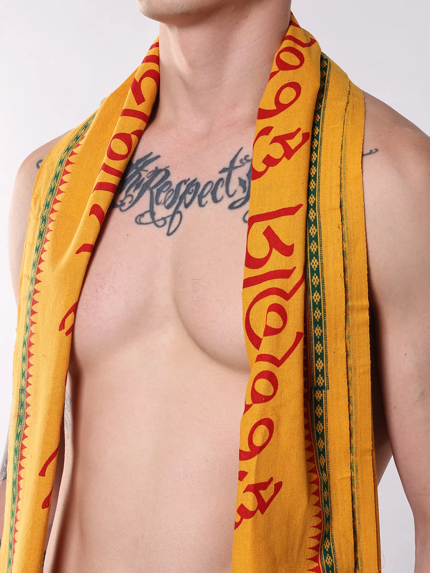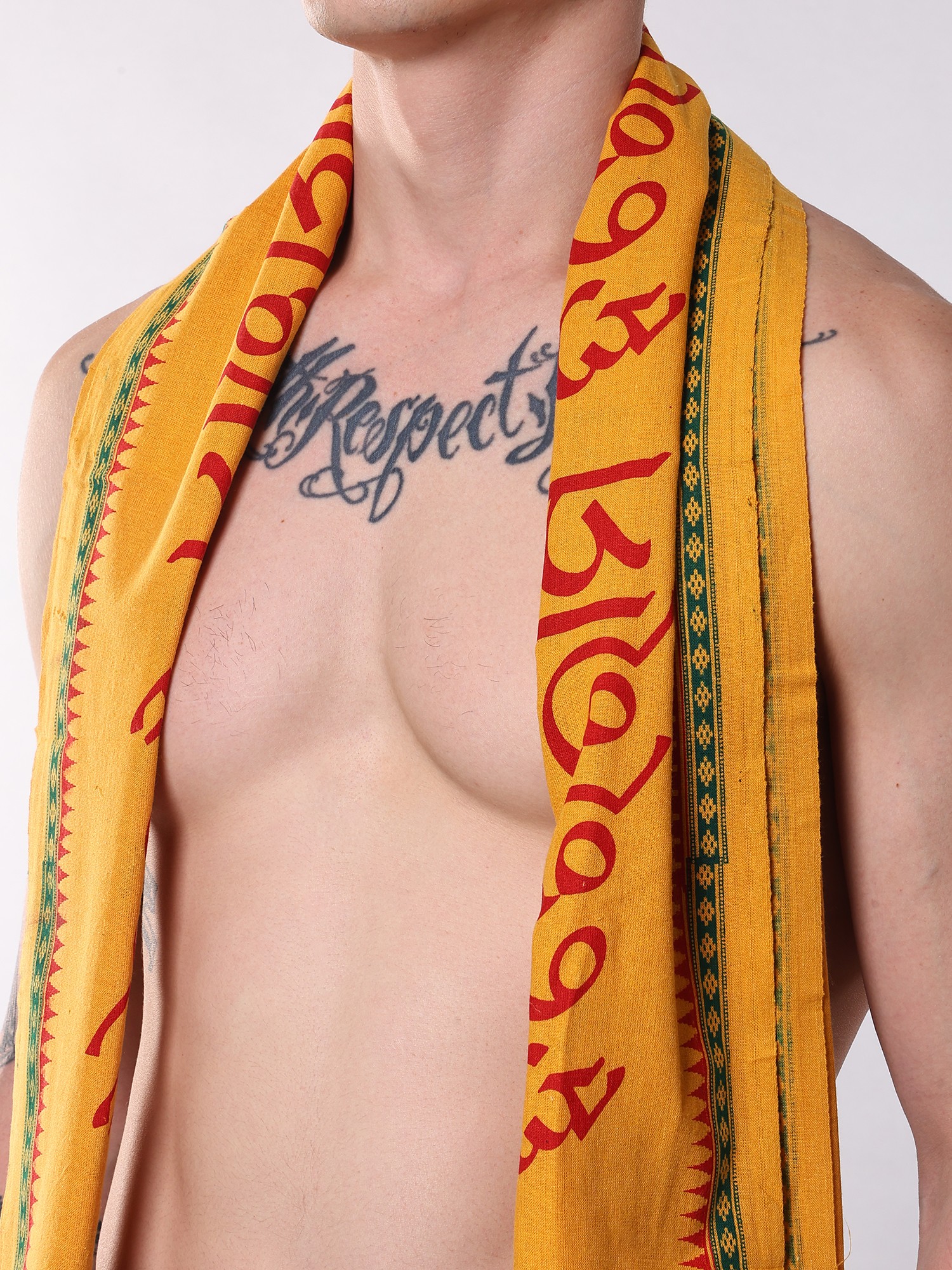 Yellow Hindu Dharma Prayer Shawl with Large Printed Om