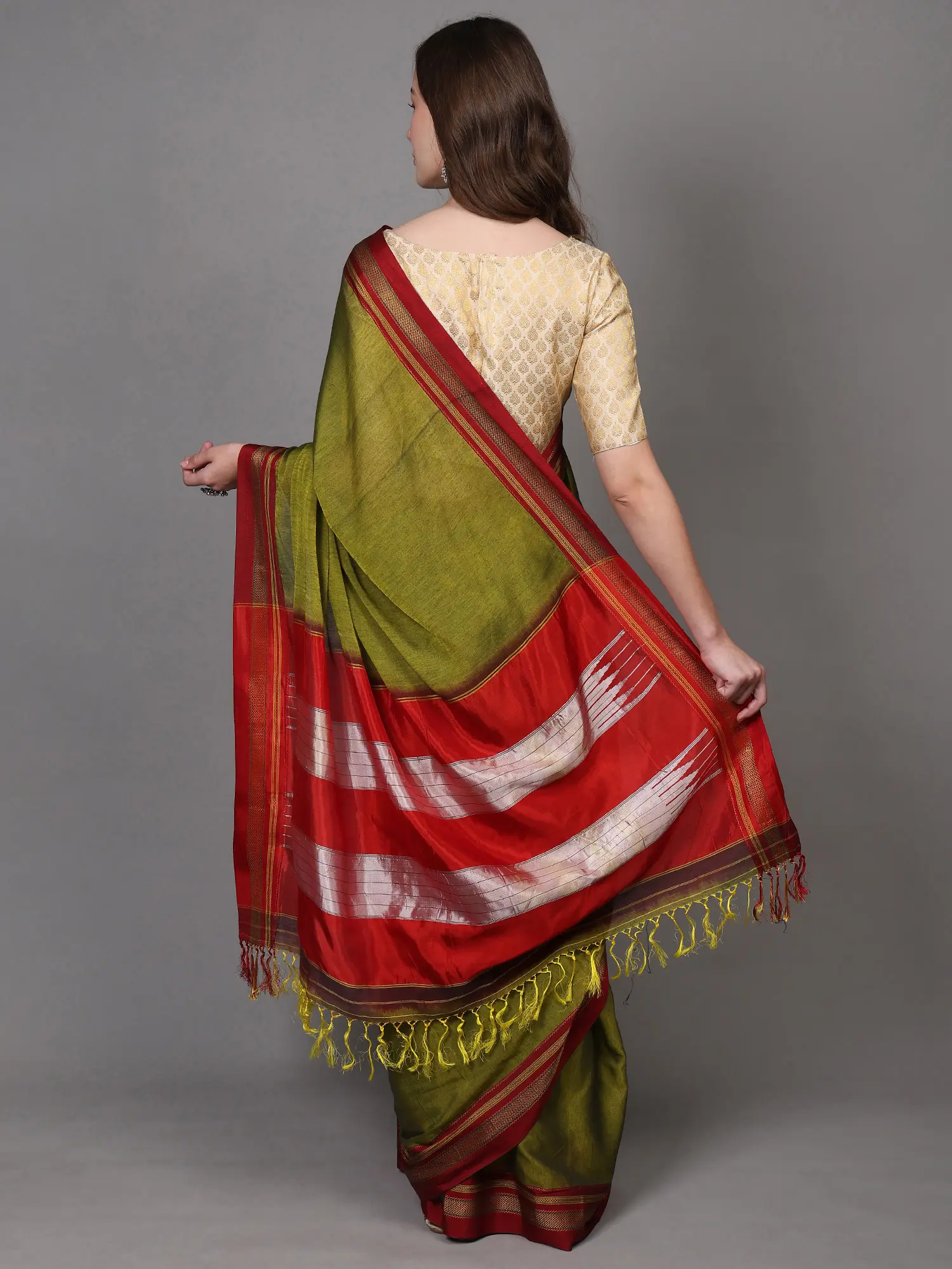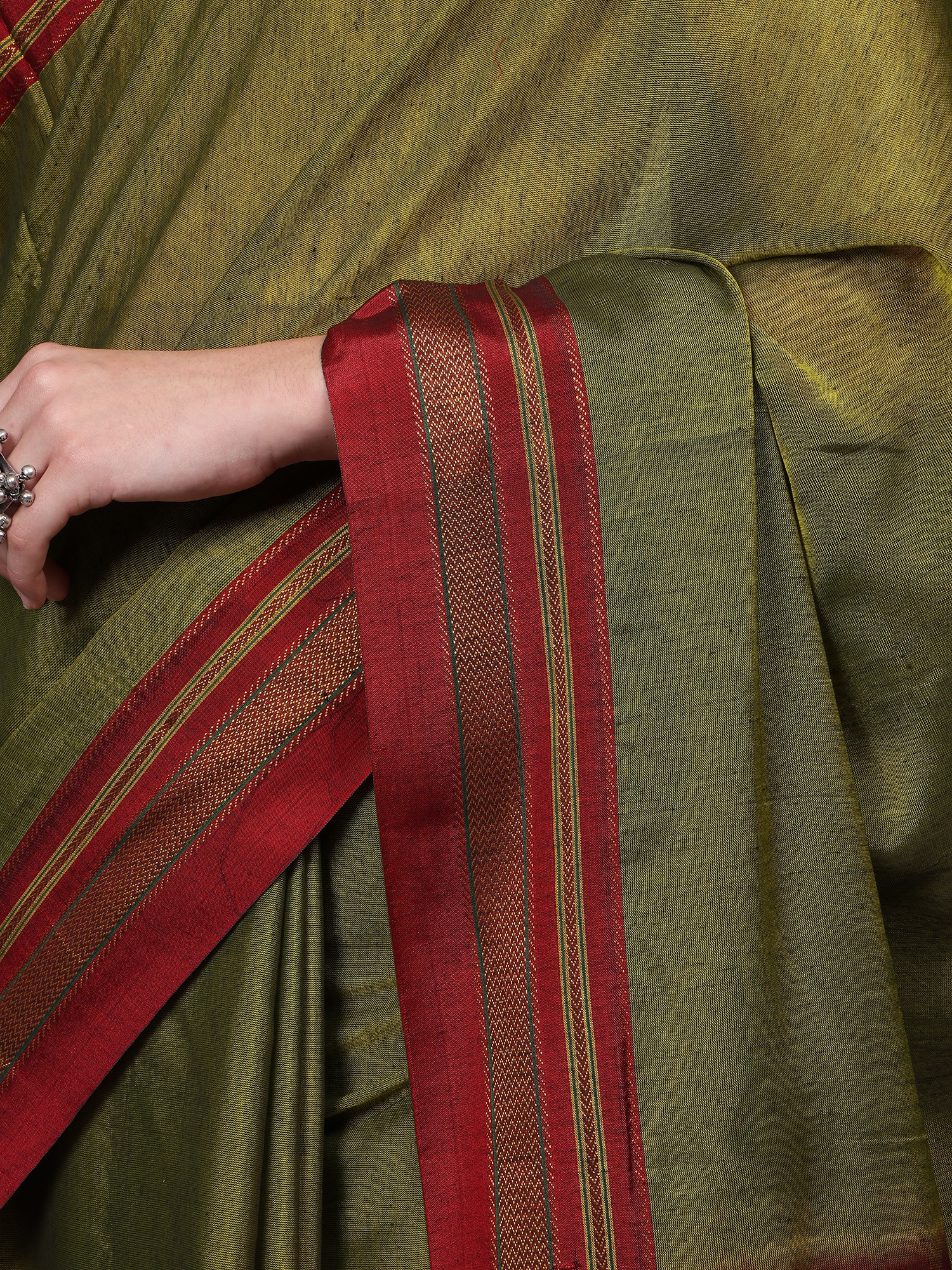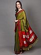 Foam-Green Cotton Saree from Tamil Nadu with Block Printed Trees and Zari Border