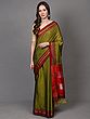 Sea Green Banarasi Saree with Magenta Pink Border and Golden Zari Motifs