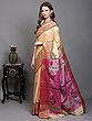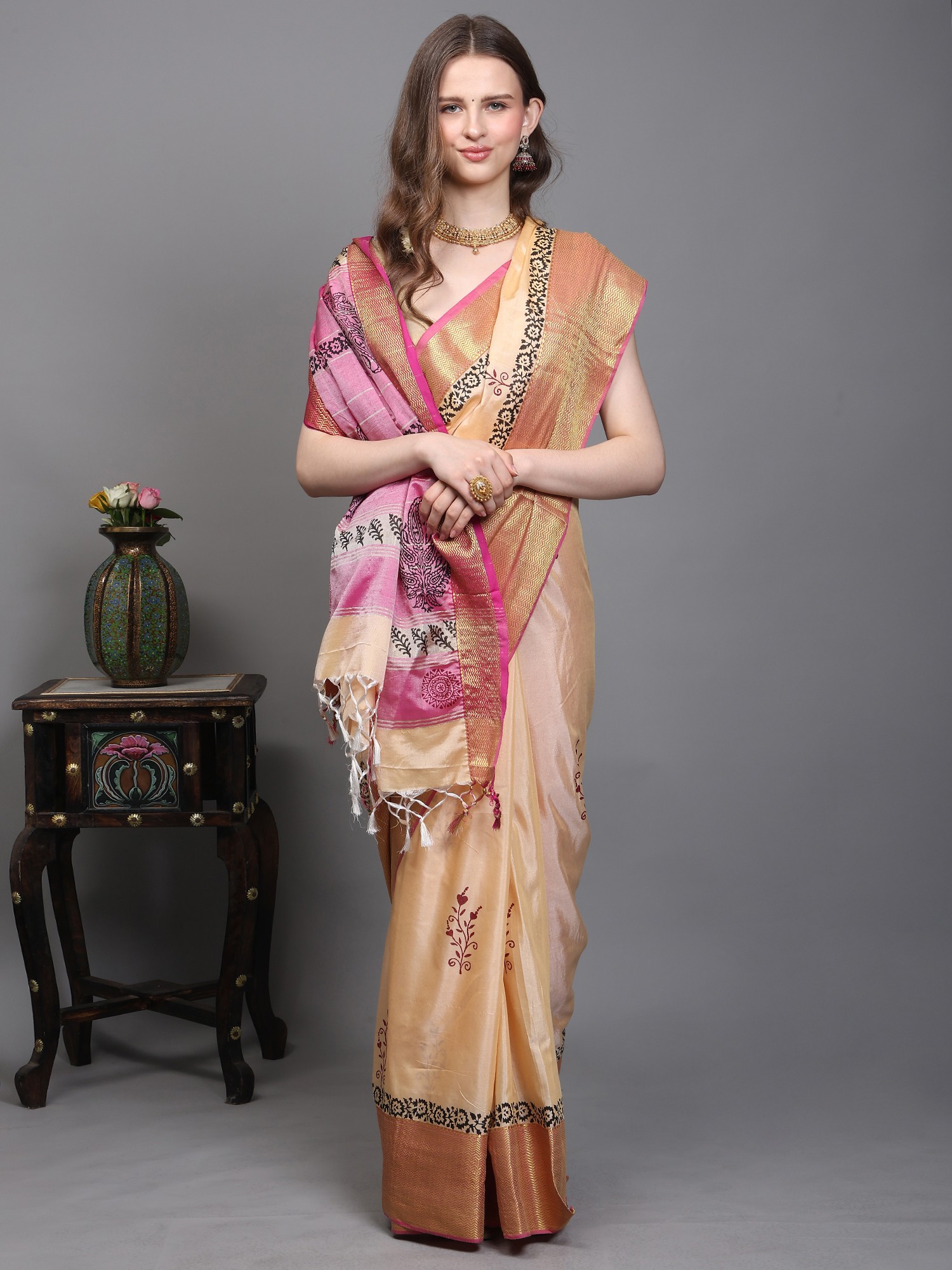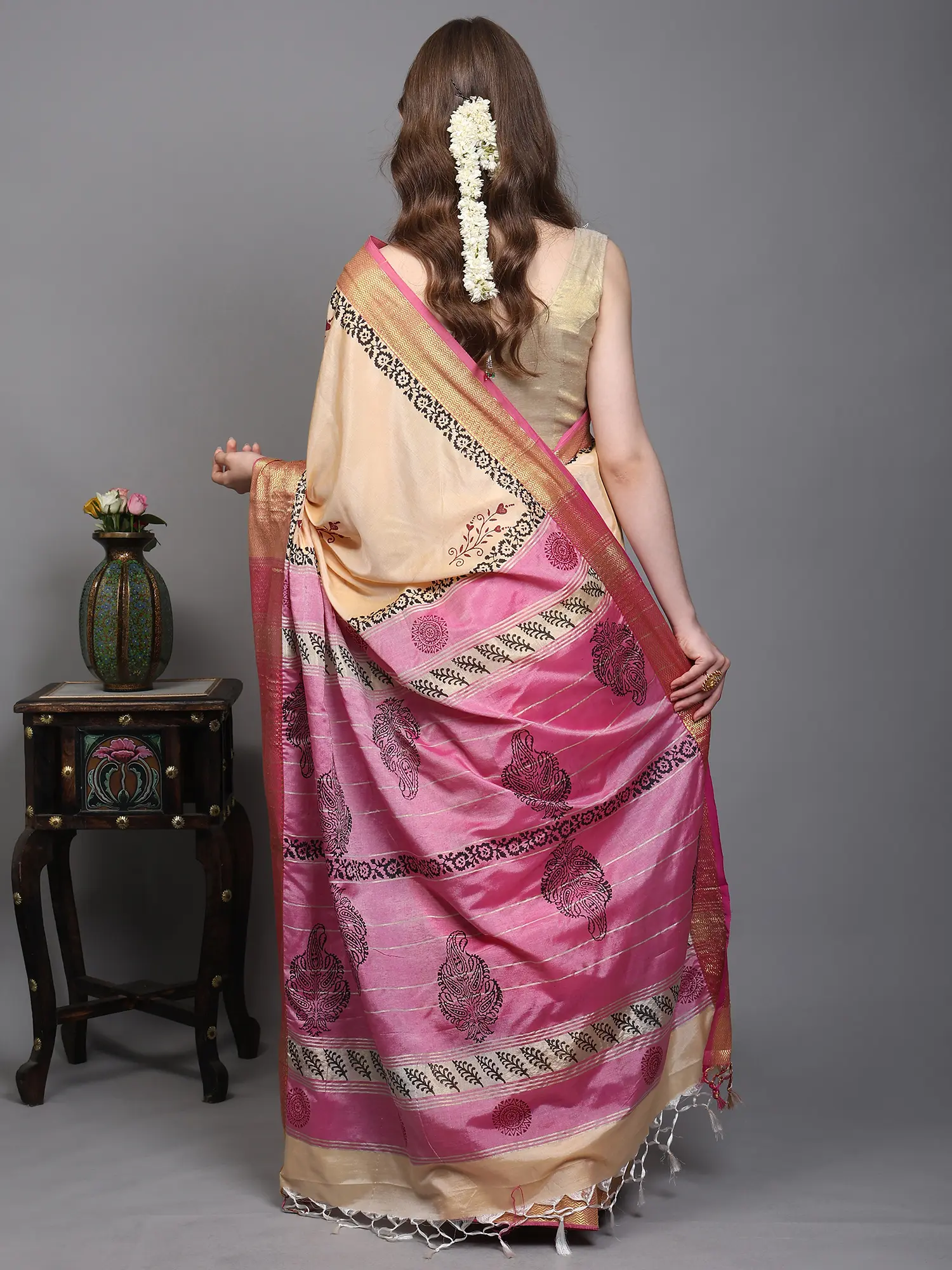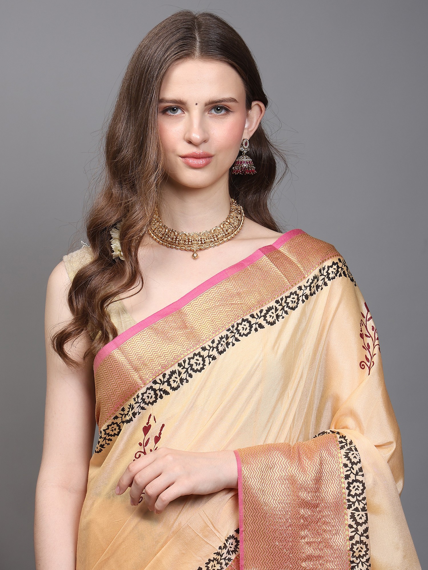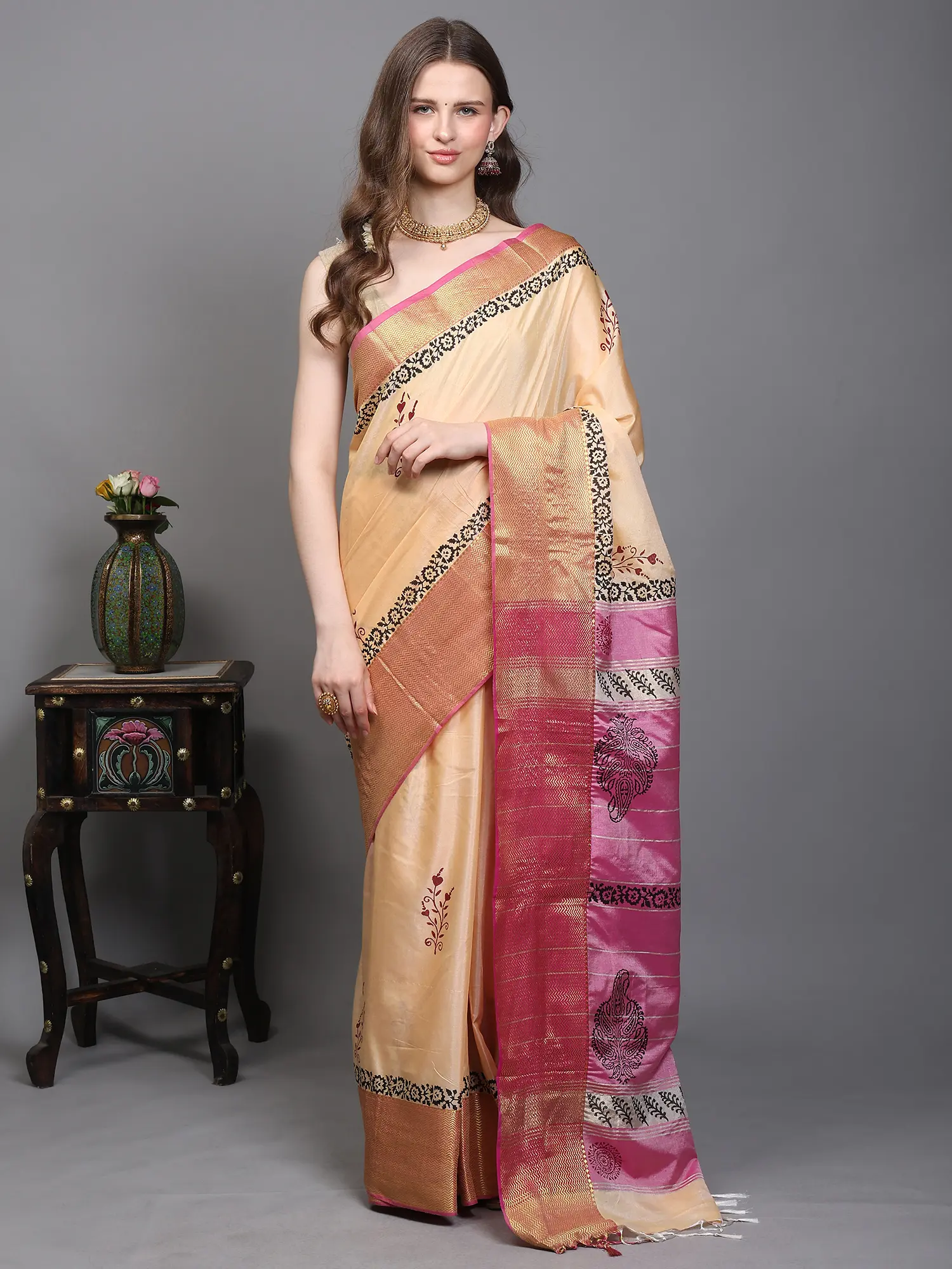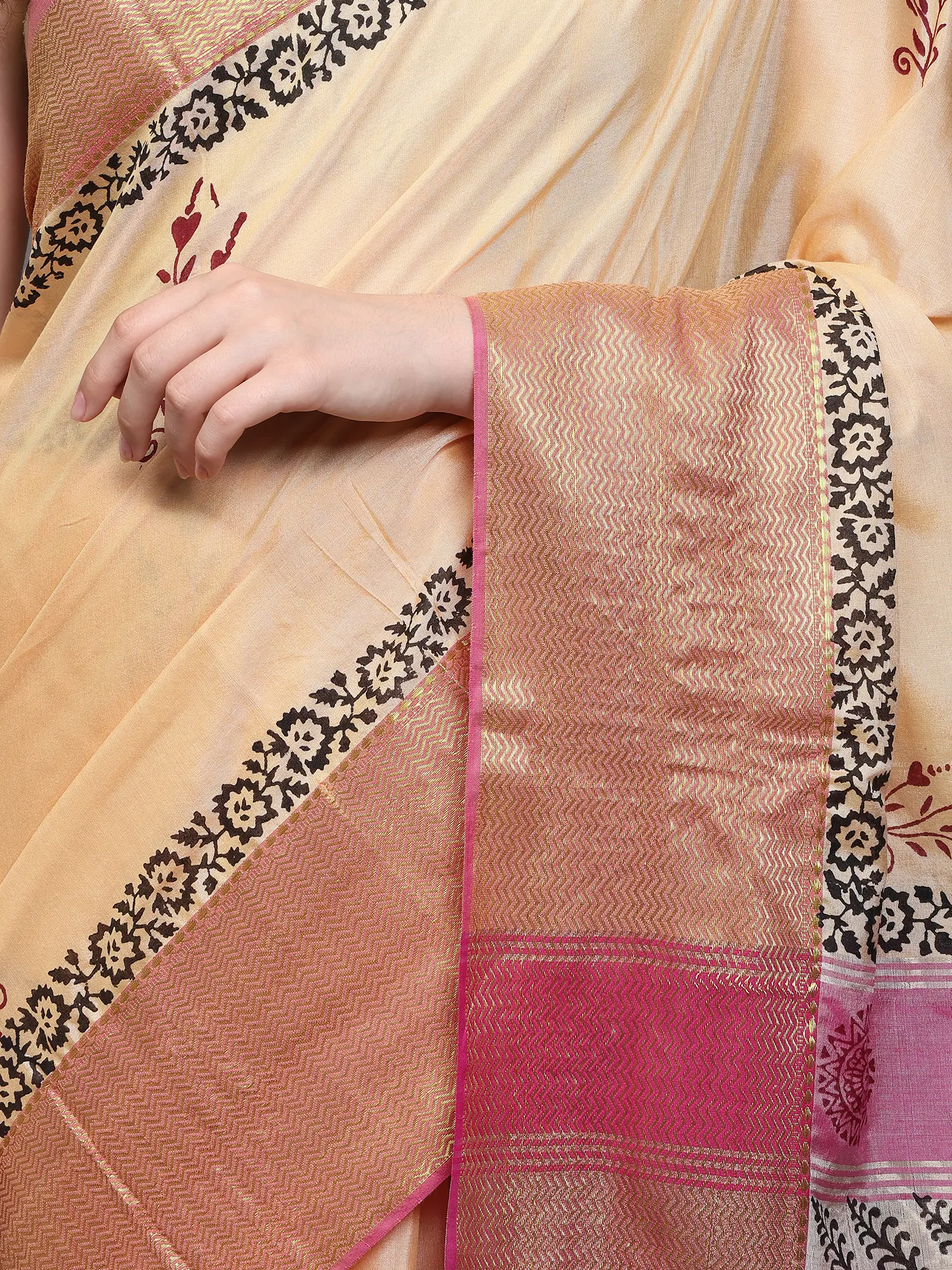 Hawaiian-Ocean Printed Saree from Kolkata with Multi-Color Leaves on Border and Pallu