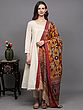 Red-Pear Kalamkari Dupatta from Telangana with Zari Border and Flower Leaf Print