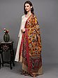 Pure Wool Shawl from Kashmir with Kalamkari Hand-Embroidered Depicting Courtyard Garden|Handwoven