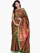 Parrot Green Silk Paithni Sari with Sheen Golden and Violet Border and Golden Zari Mor Big Butta, Kairi Butta and Mor Kunda Motifs