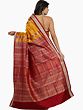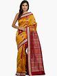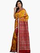 Dark-Cheddar Bomkai Handloom Sari from Orissa with Box Design on Pallu and Temple Border