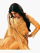 Golden-Nugget Ayesha Trouser Salwar Kameez Suit with Zari-Embroidered Flowers and Embellished Crystals
