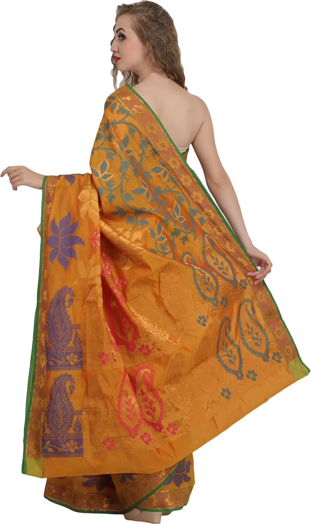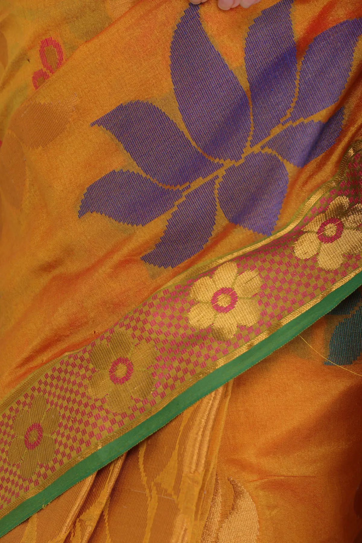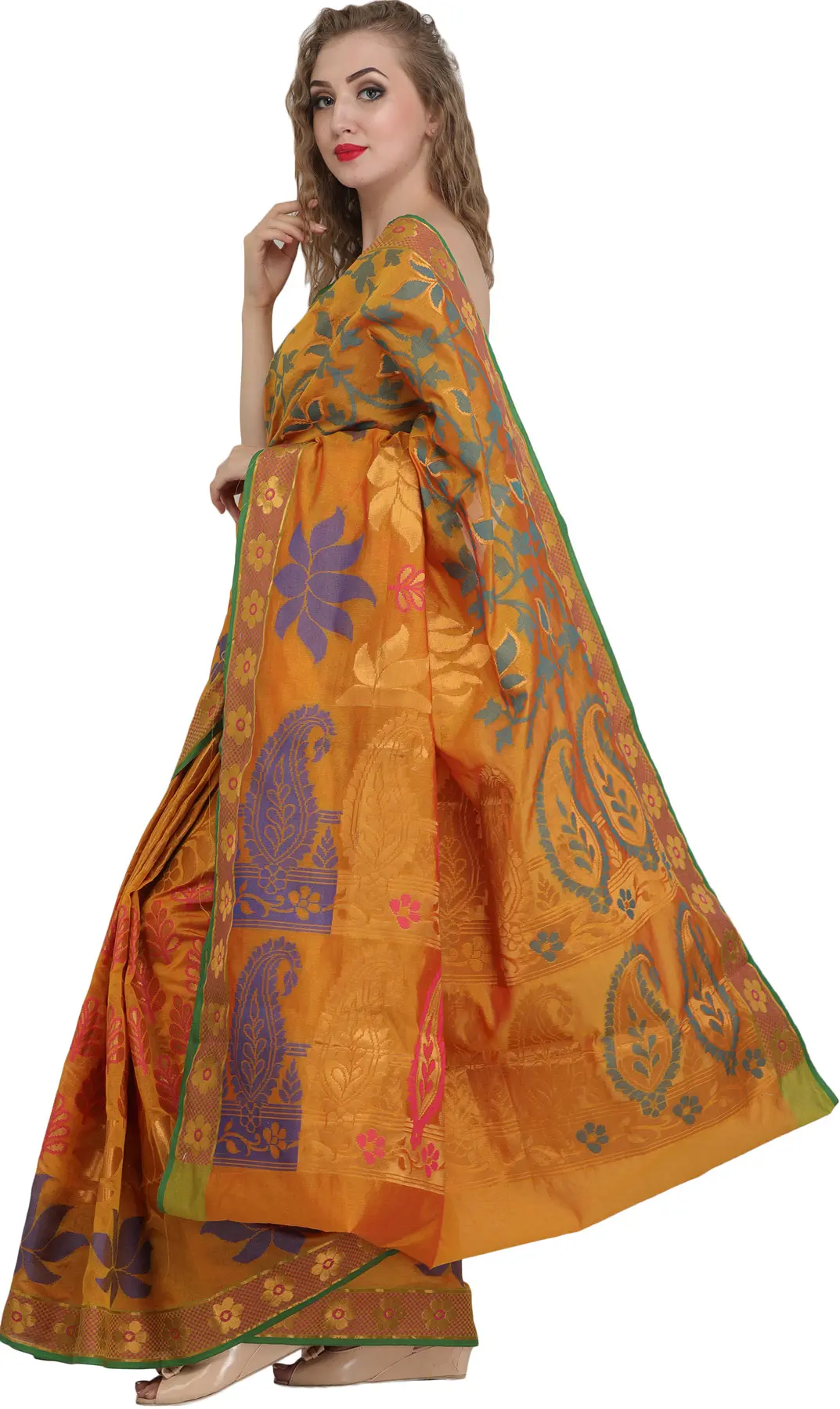 Golden-Nugget Banarasi Sari with Woven Lotuses and Paisleys