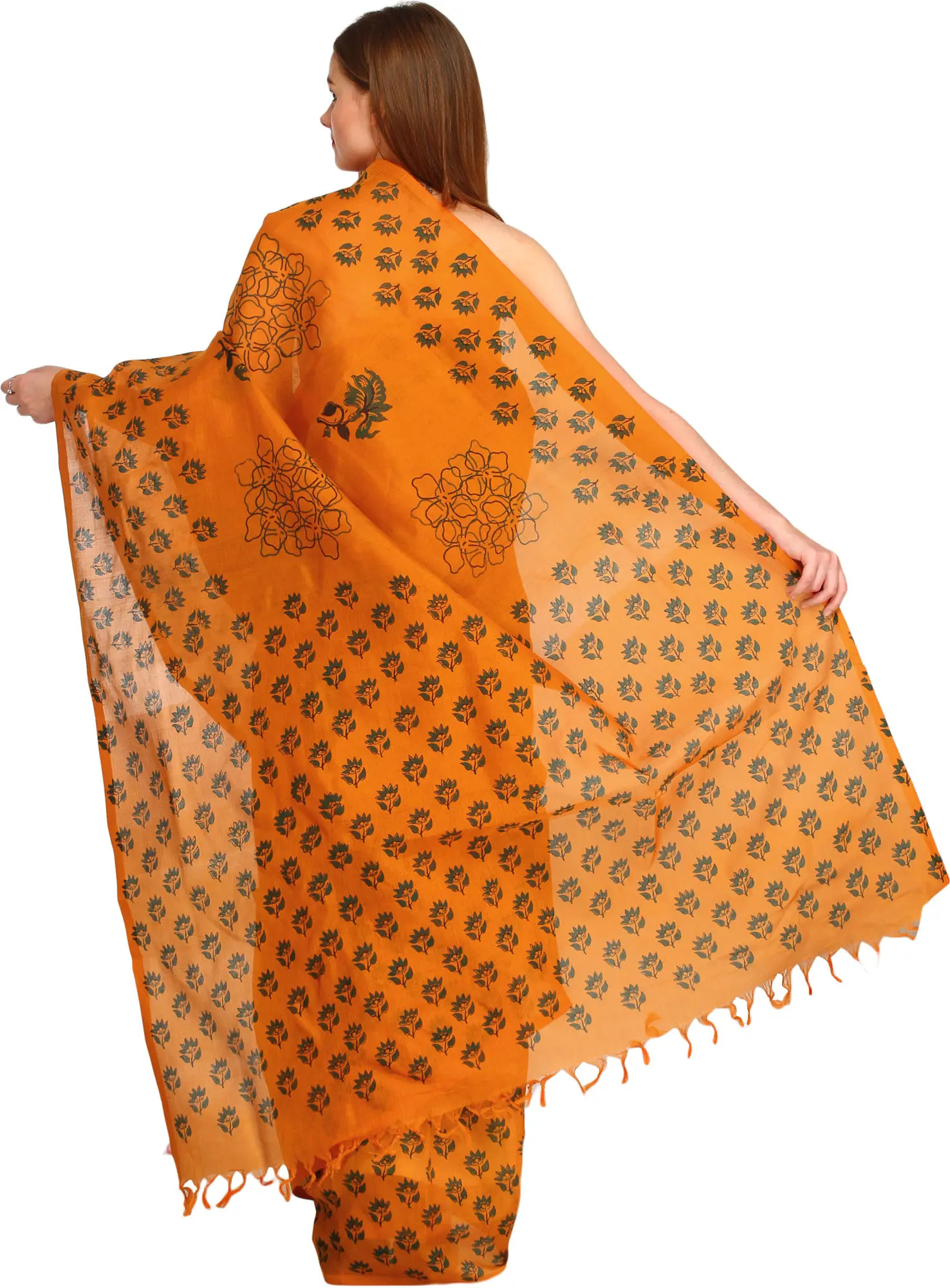 Traditional Cotton Printed Saree With Attractive Tassels Pallu