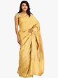 Golden Sari from Banaras with Zari-Woven Leaves and Brocaded Aanchal