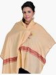 Golden-Straw Plain Kashmiri Stole with Sozni Emboridered Border