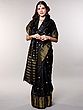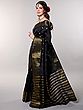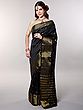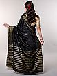 Jet-Black Saree from Bengal with Zari-Woven Stripes