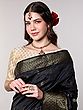 Caviar-Black Kanjivaram Sari from Tamil Nadu with Zari-Woven Motifs on Anchal