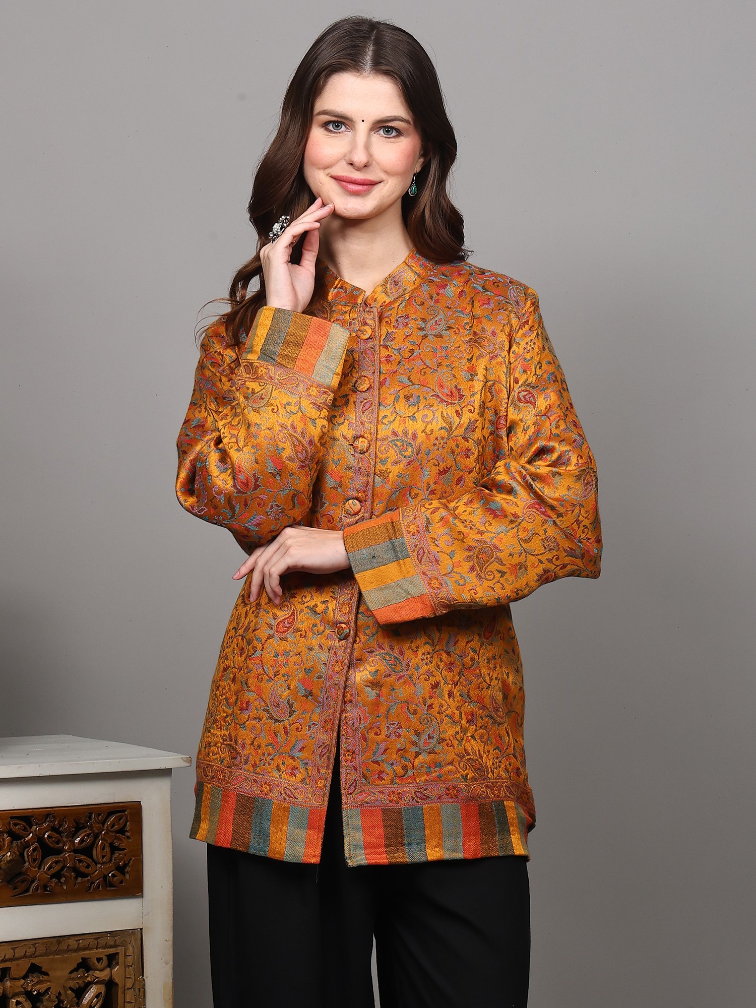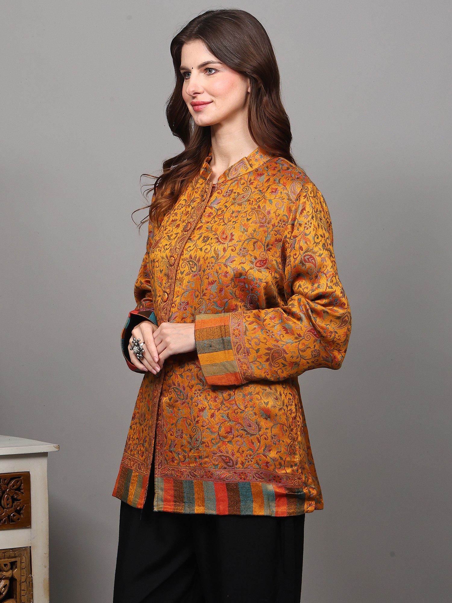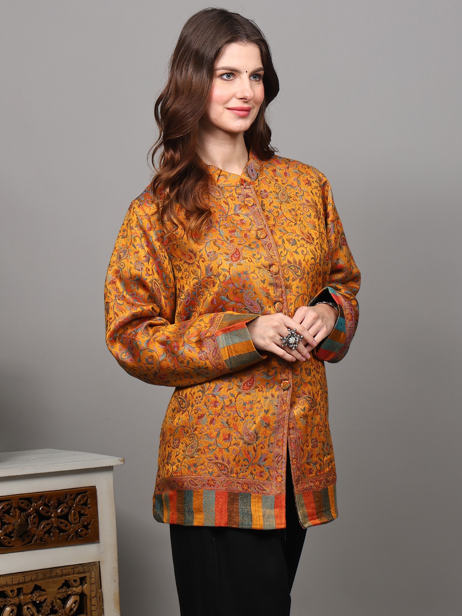 Kashmiri Short Jacket with Paisleys Hand Aari Embroidery on Border