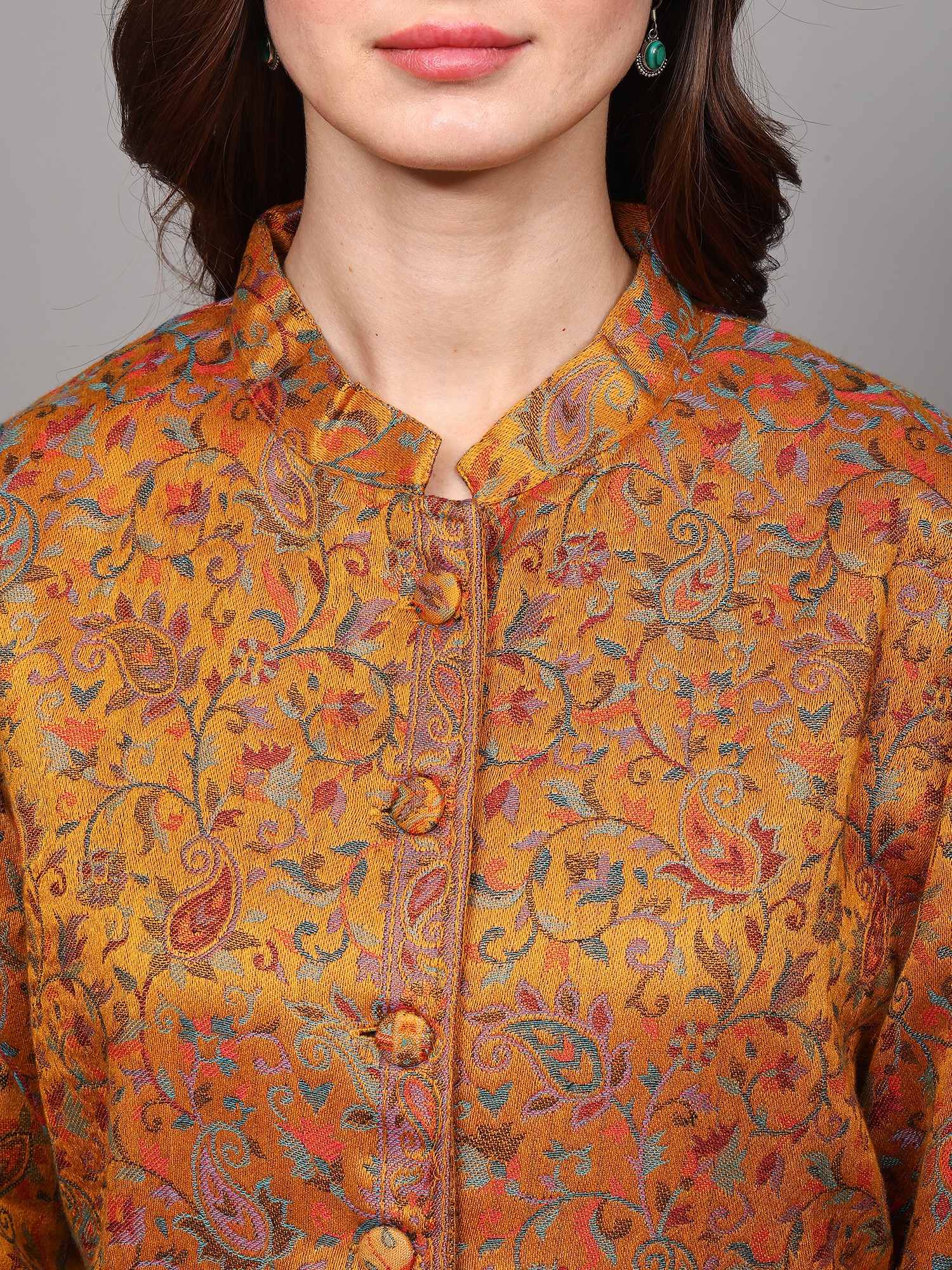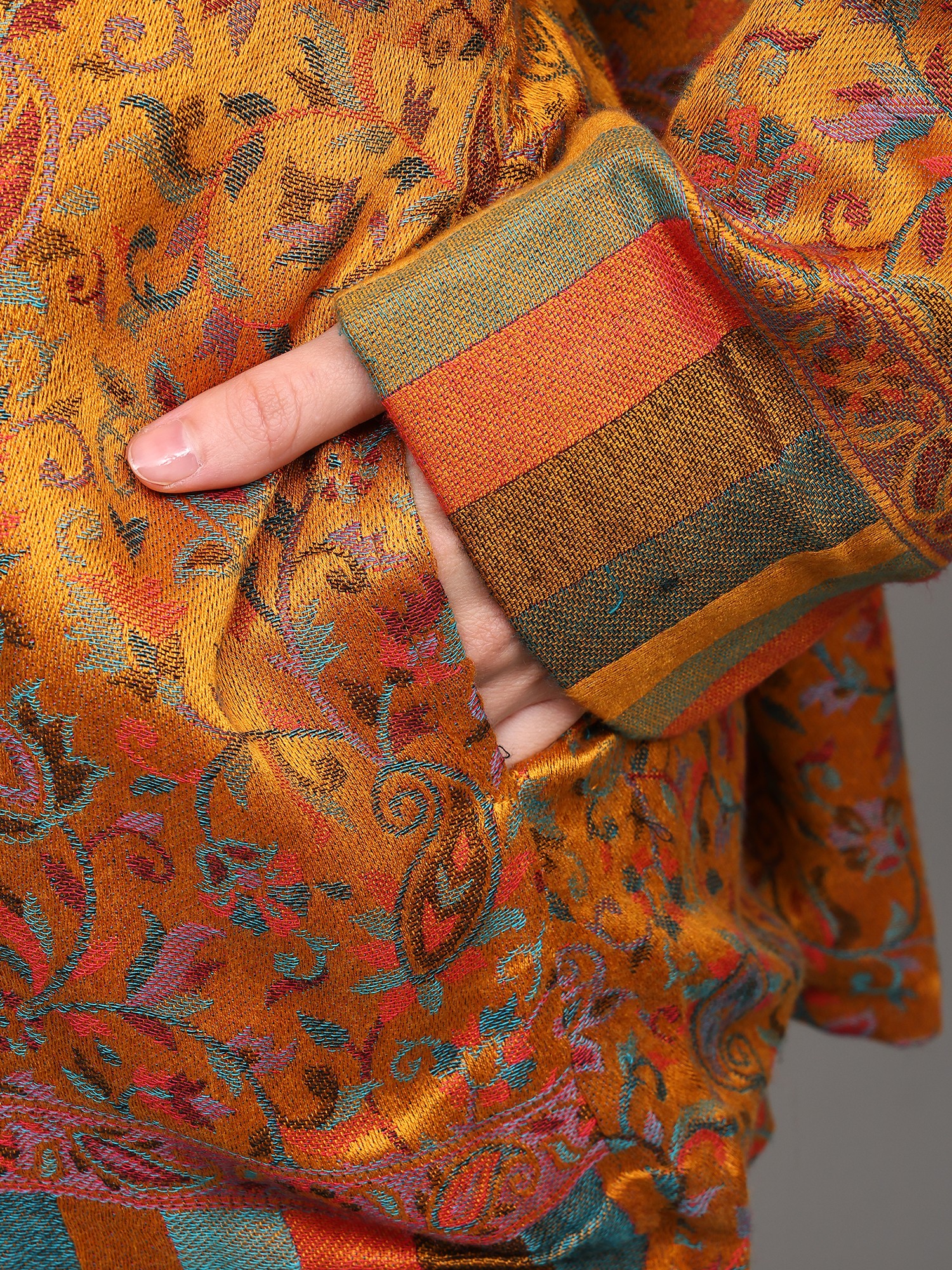 Creme-Brulee Kani Short Jacket with Woven Paiselys-Flowers and Side Pockets