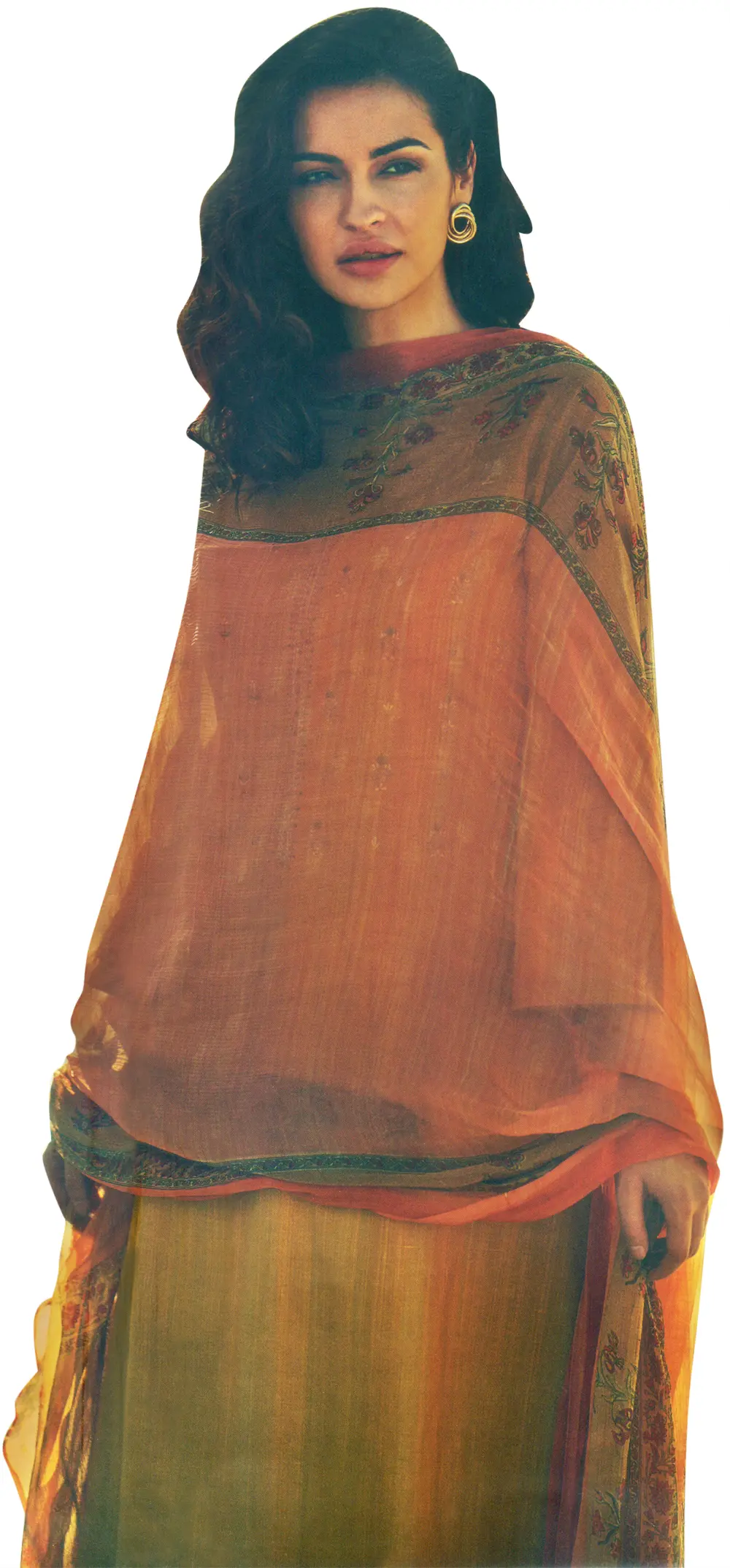 The soft and breathable fabric of cotton has been transformed into a statement of regalia in this golden-yellow salwar suit, with the rich effect of golden adorned by floral motifs and pairing of a luxurious palazzo style pant. The kurta is decorated with floral pattern embroidery on the torso and is complemented by palazzo pants that promise unparalleled comfort while donning this stylish attire. The crepe dupatta amplifies your elegance with the sheer and chic feel of the fabric, which is elevated by floral prints all over.