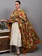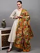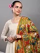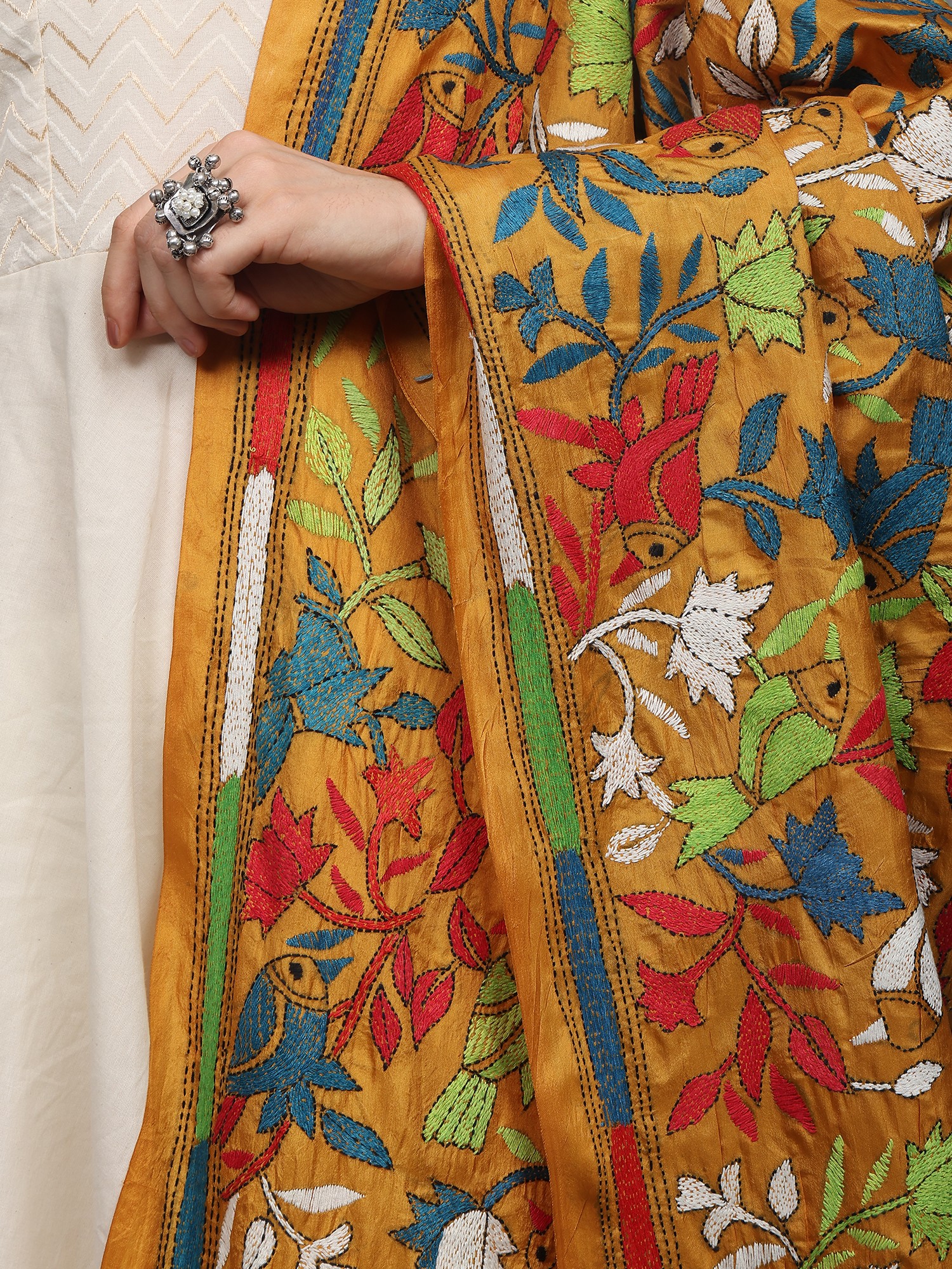 Yellow Ochre Cotton Semi Silk Stole with Multicolored Kantha Embroidery