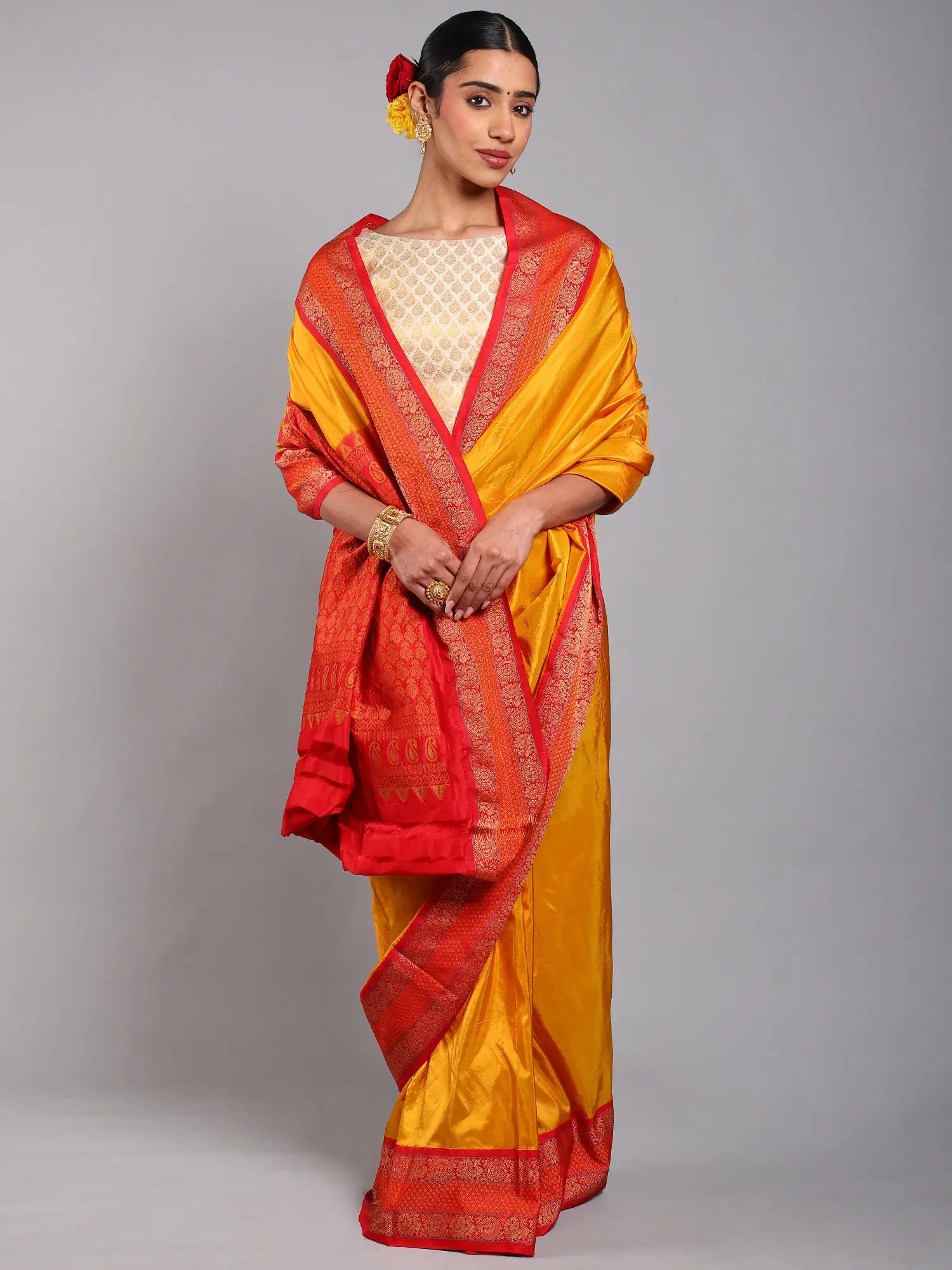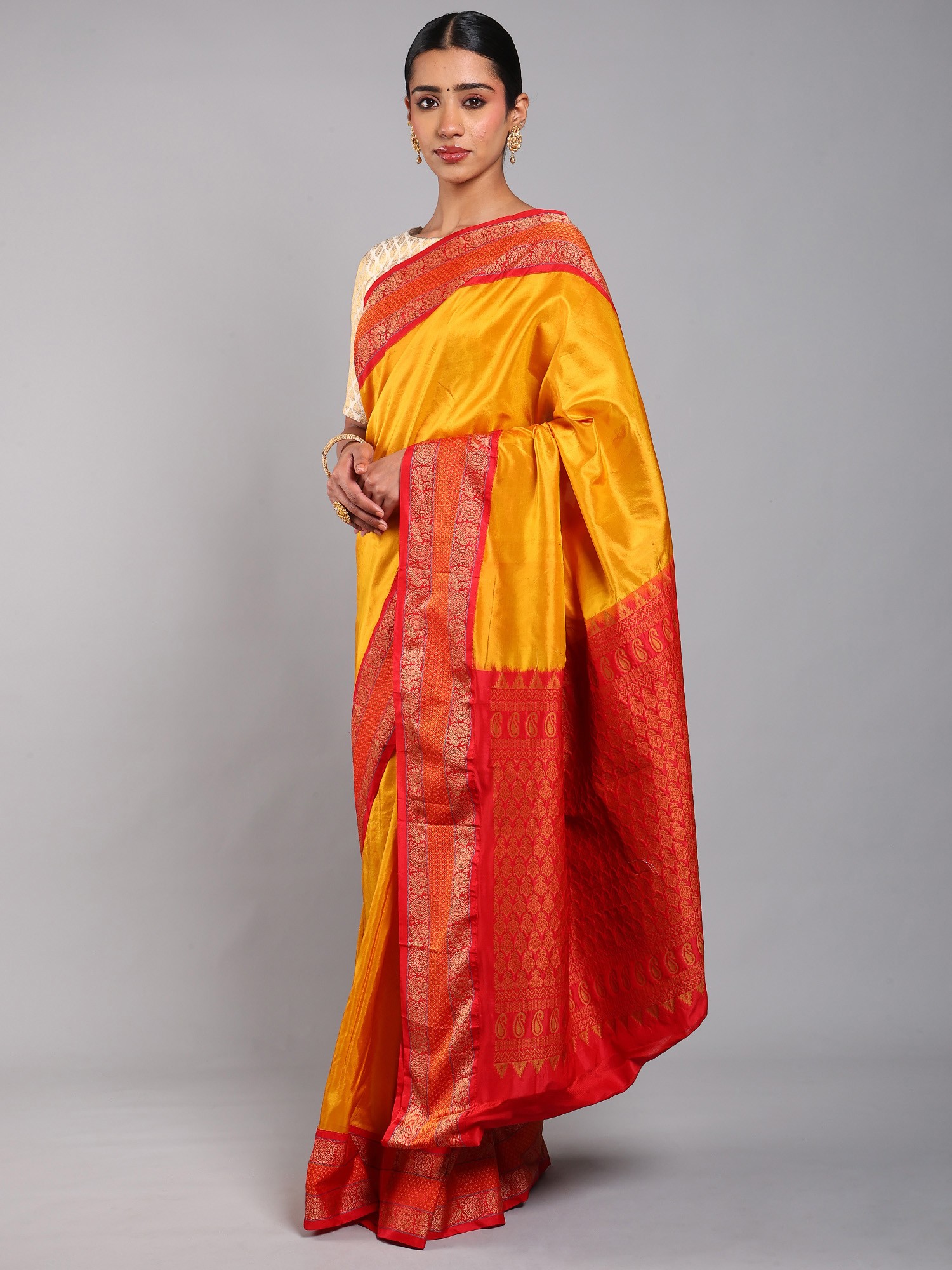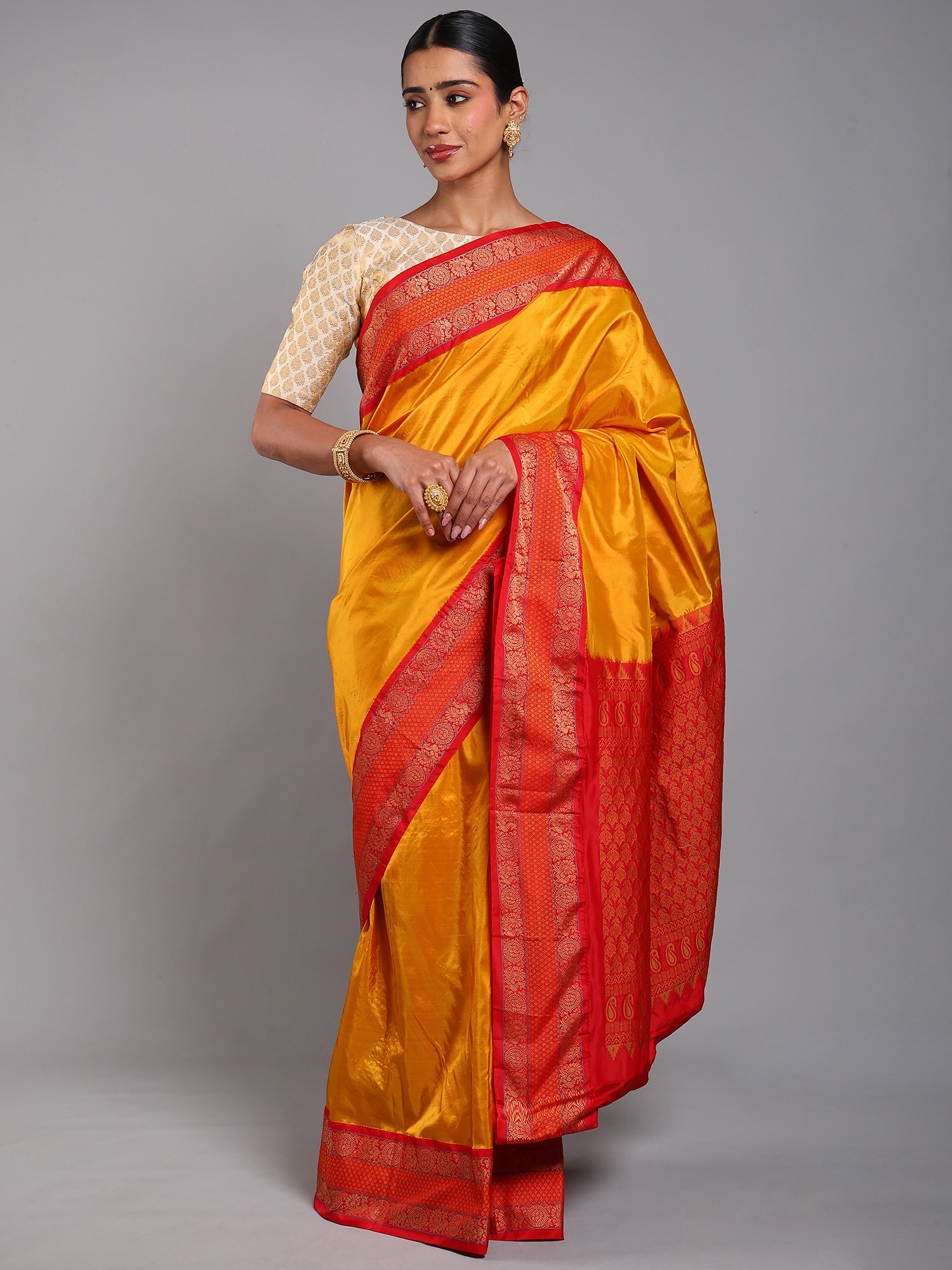 Ocean-Depths Bootis woven Pure Silk Saree from Bangalore with Golden Thread Weave on Border