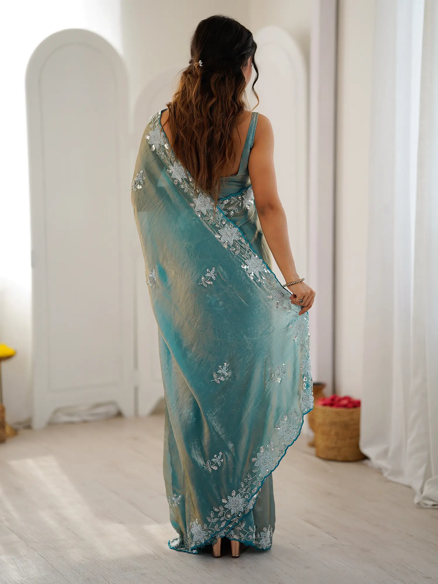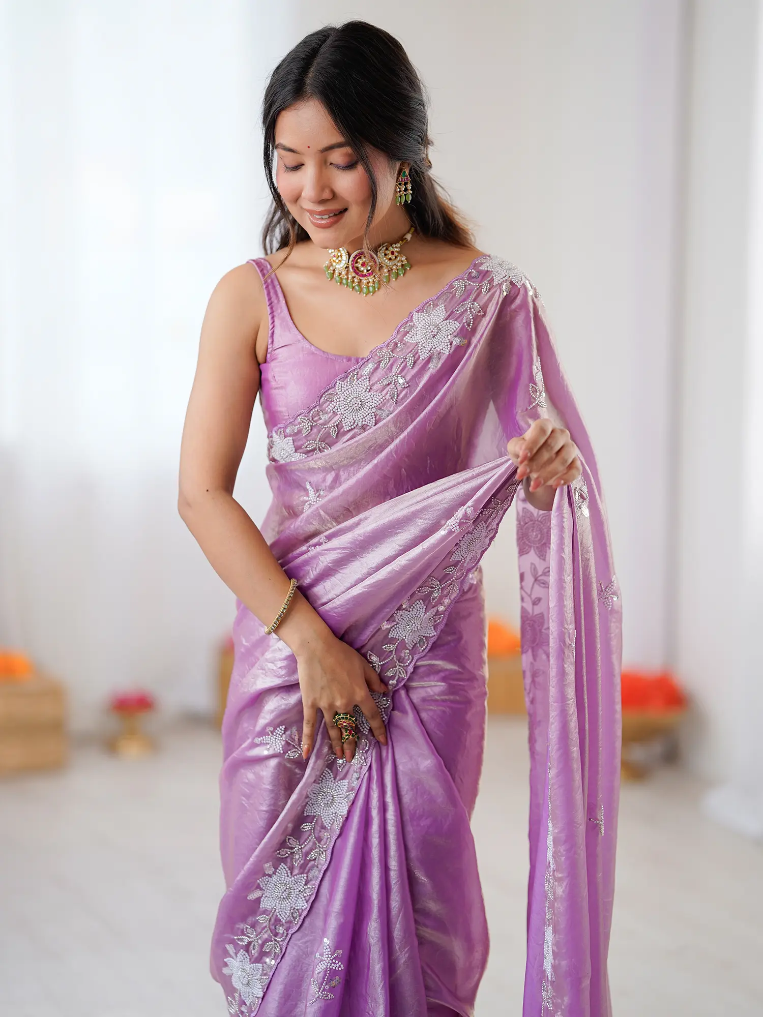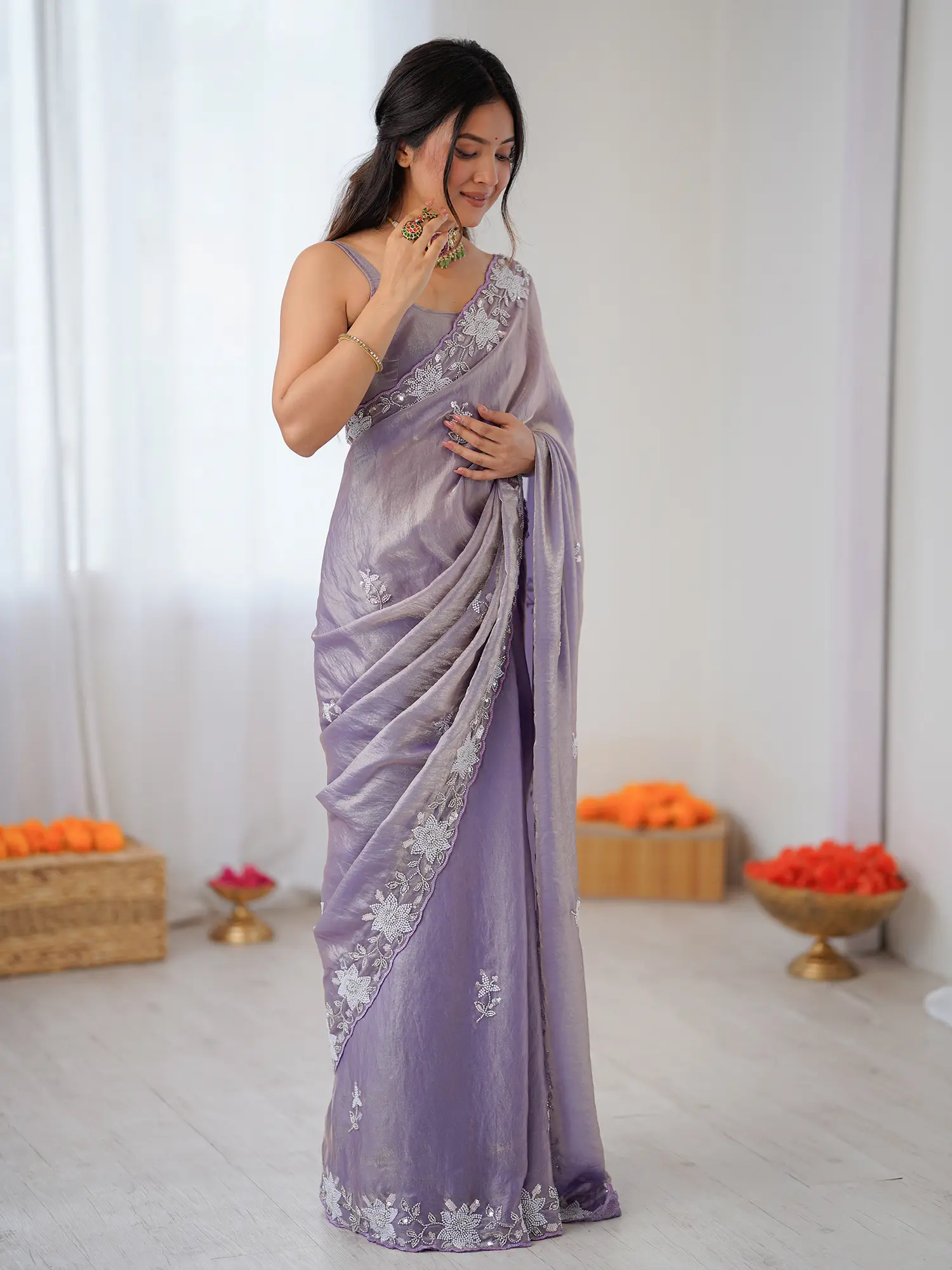 Stunning Shaded Chinon Saree Featuring Premium Double Color Swarovski Embroidery And Elegant Subtle Piping Detailing