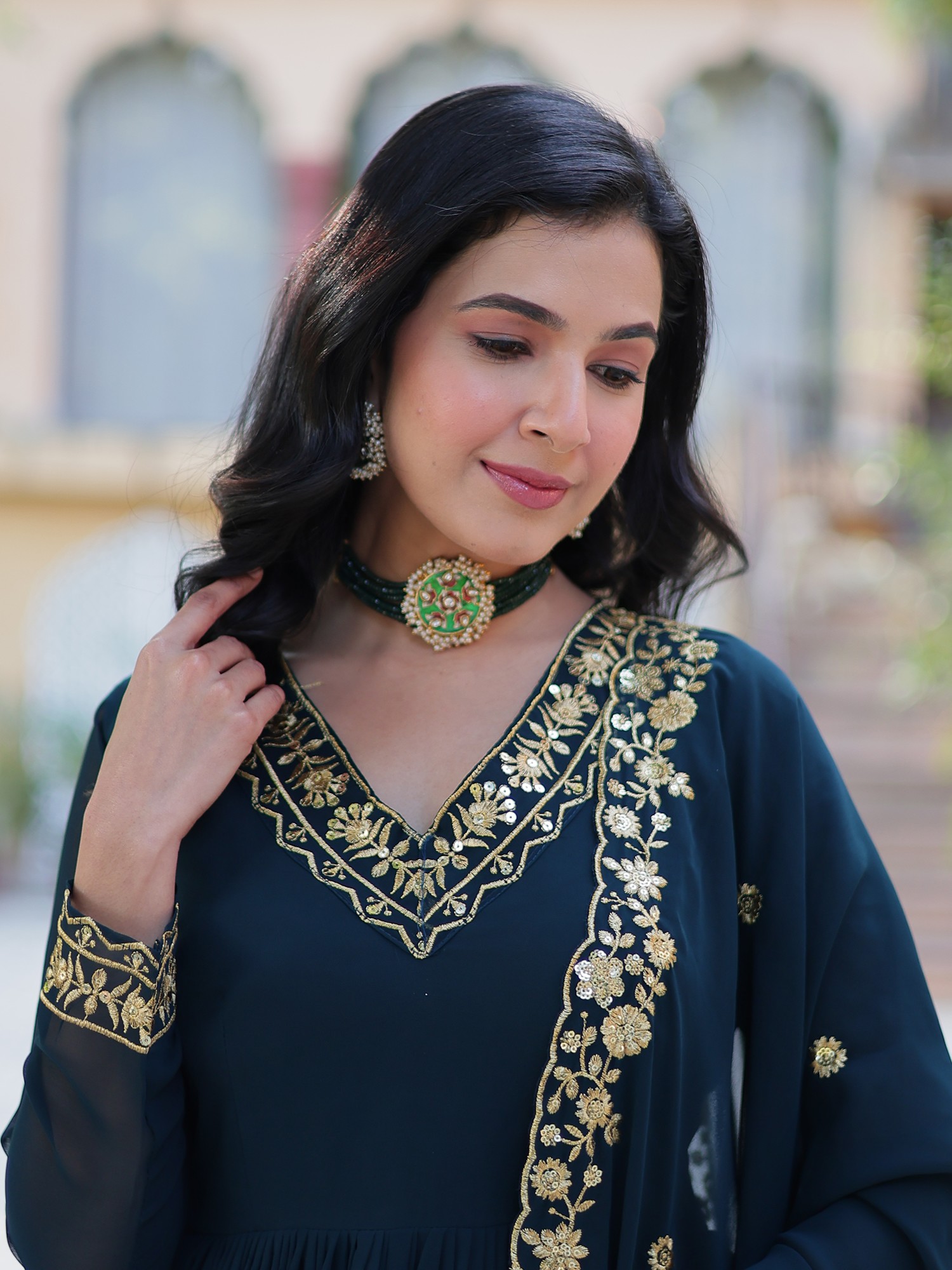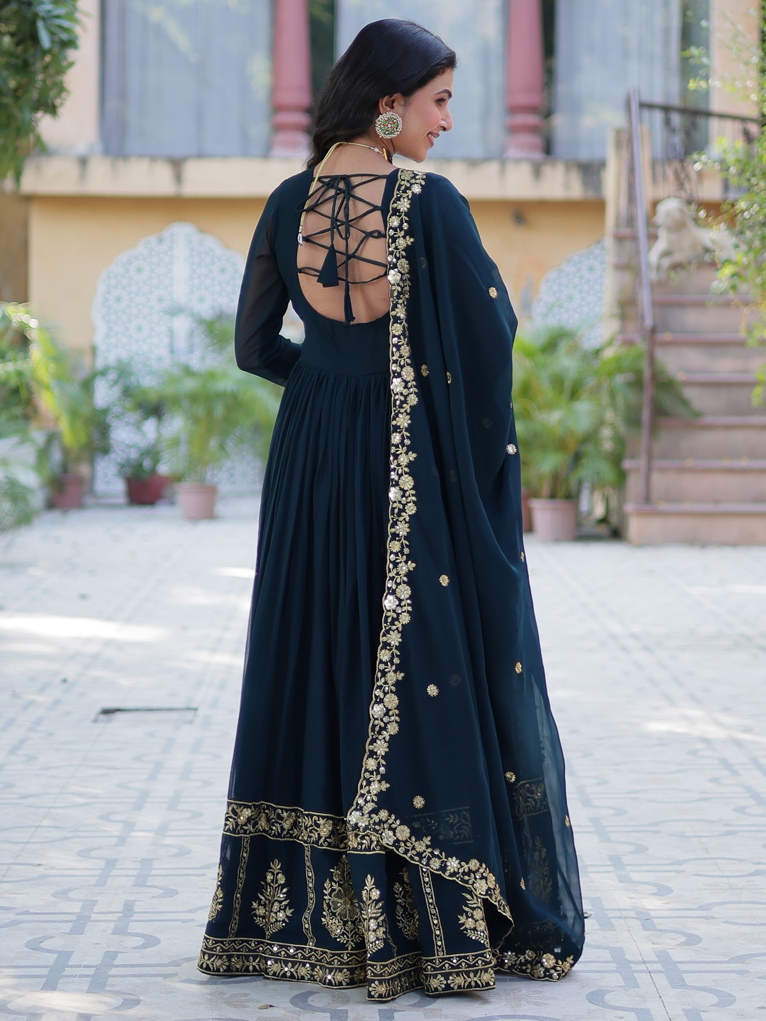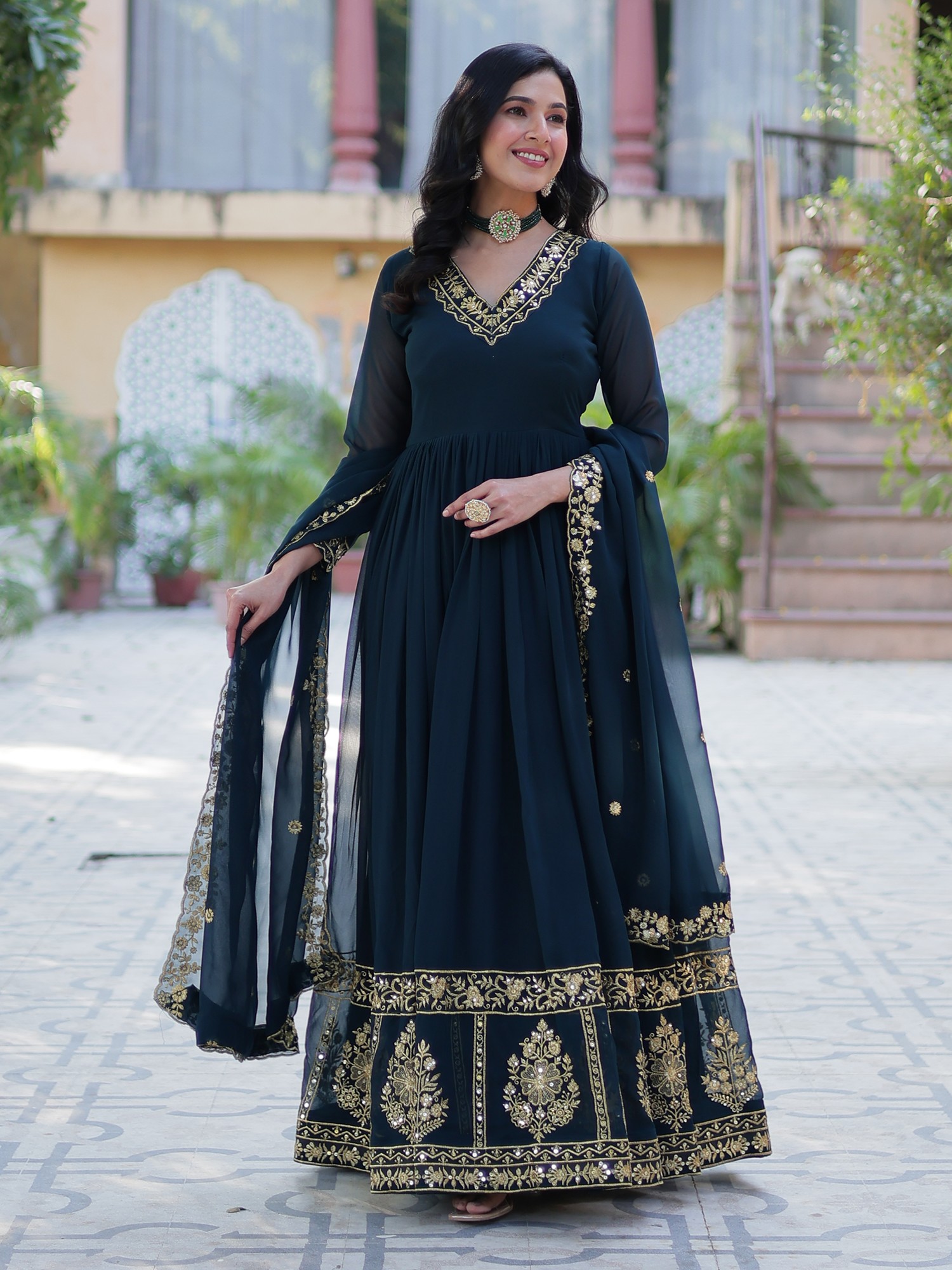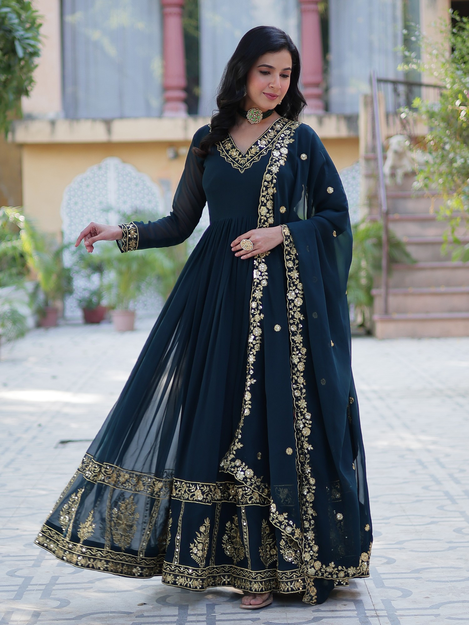 Heavy Embroidered Faux Georgette Designer Anarkali Gown Set with Dupatta