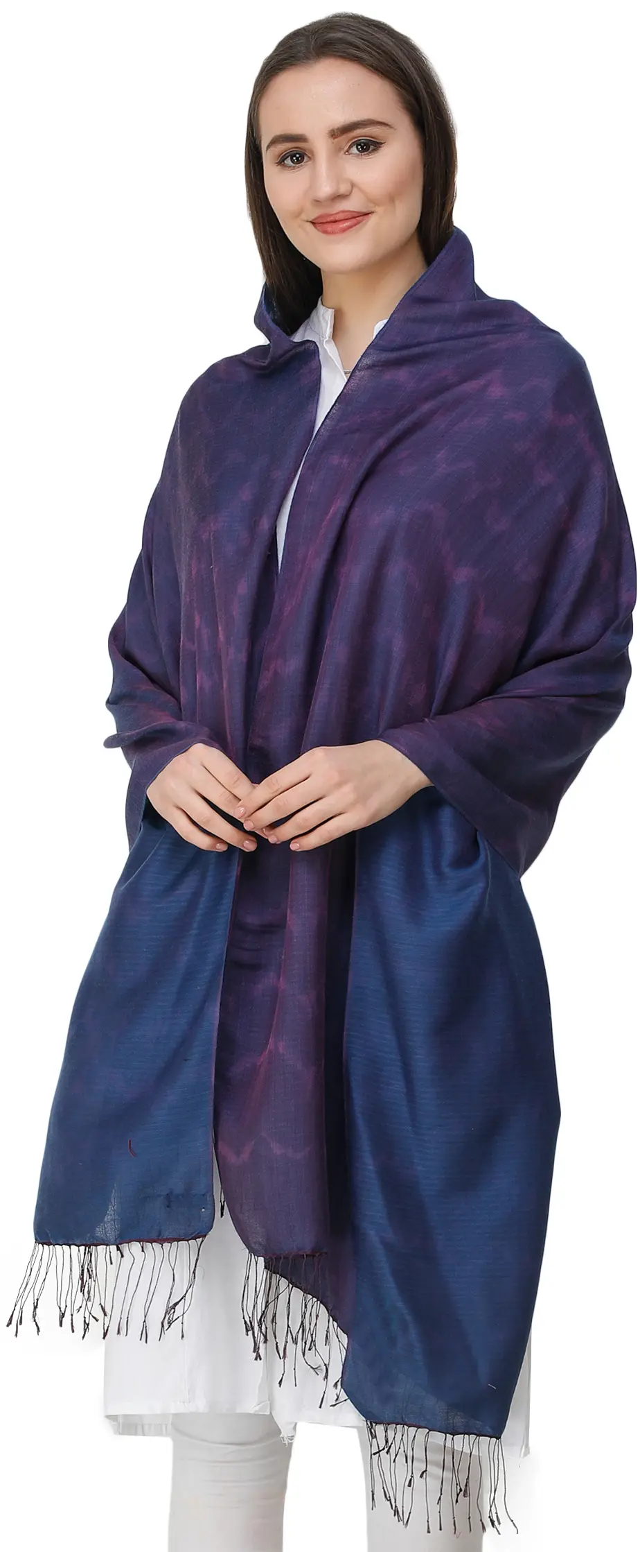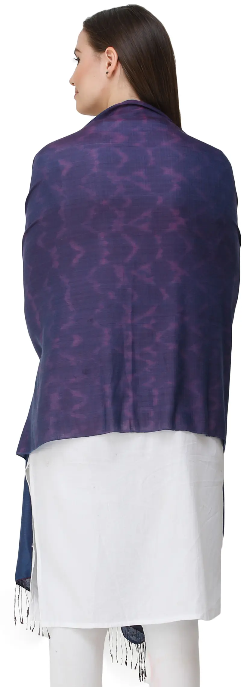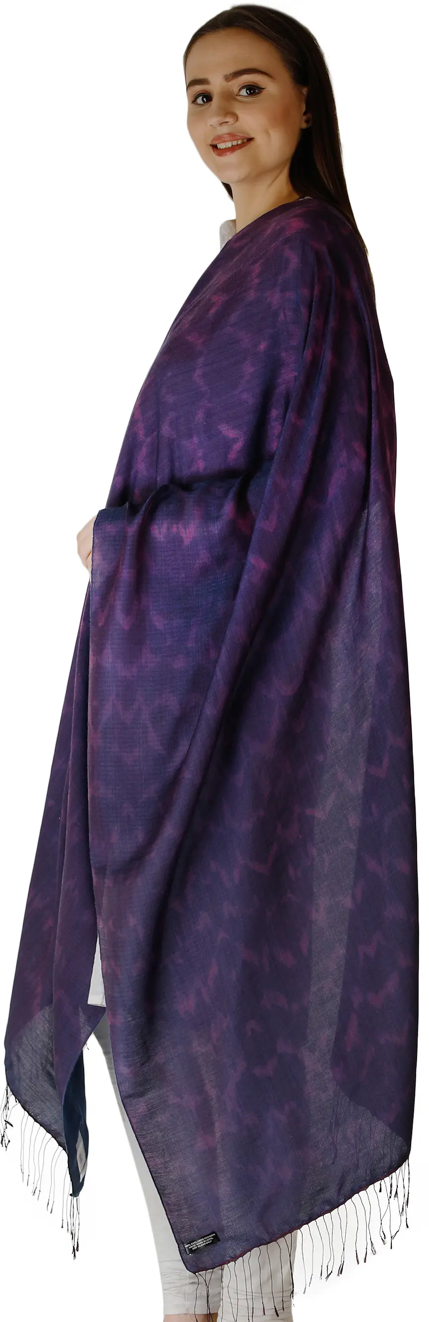 What sets this stole apart is its mesmerizing batik print. Batik is an ancient art form involving the application of wax to fabric, which then resists dye, creating unique patterns. The subtle yet striking patterns on this stole are a beautiful interplay of deep purples and rich blues, reminiscent of twilight skies or a blossoming vineyard. Each piece is a singular creation, ensuring that no two stoles are exactly alike, offering you a truly individual statement.