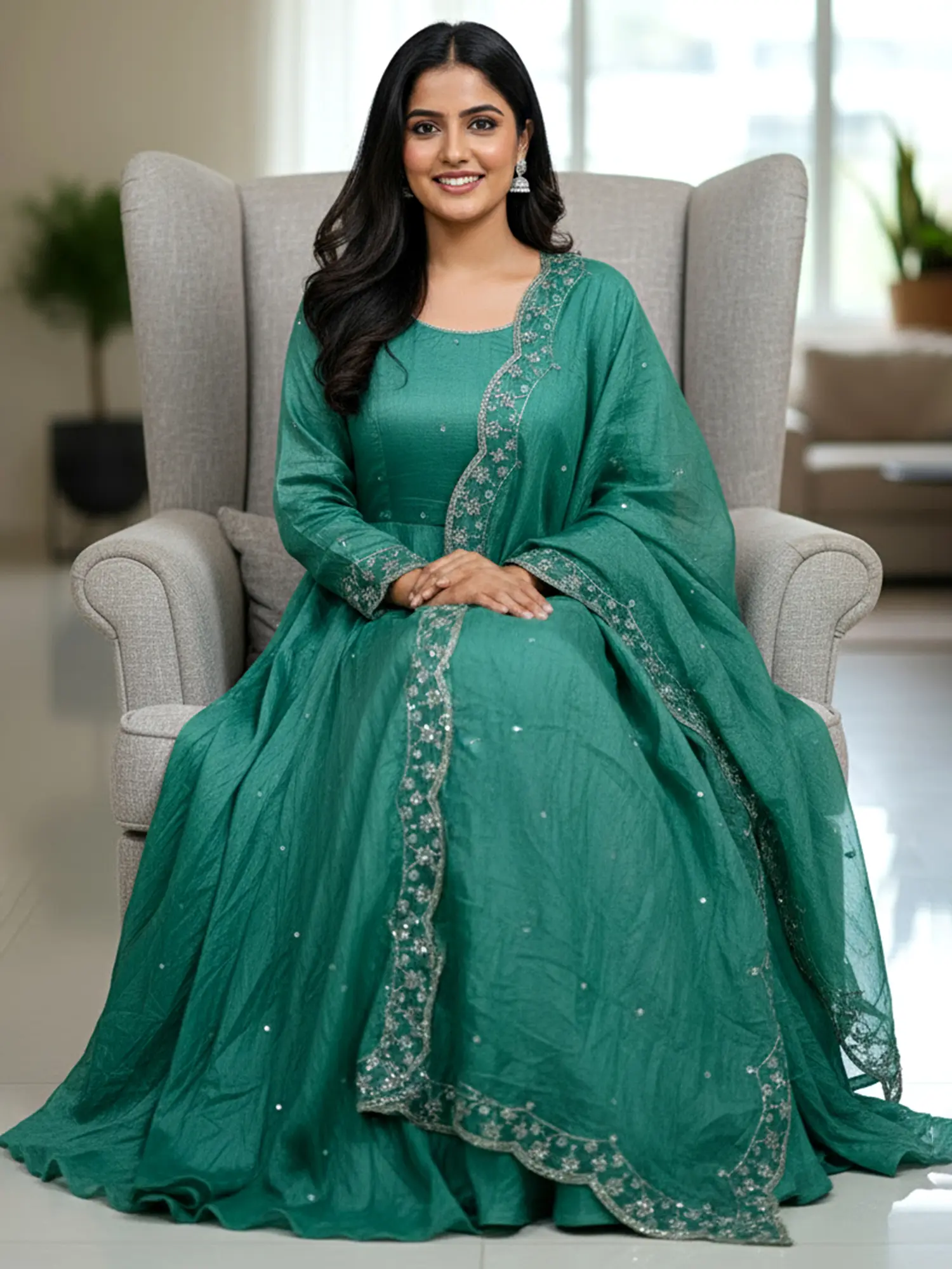 This design draws inspiration from the timeless elegance of Indian festive wear, reinterpreted for the modern woman. It embodies a spirit of joy and celebration, reflecting a rich cultural heritage that values beauty and intricate craftsmanship. Wearing this is more than just an aesthetic choice; it's an embrace of tradition and a connection to enduring celebrations.