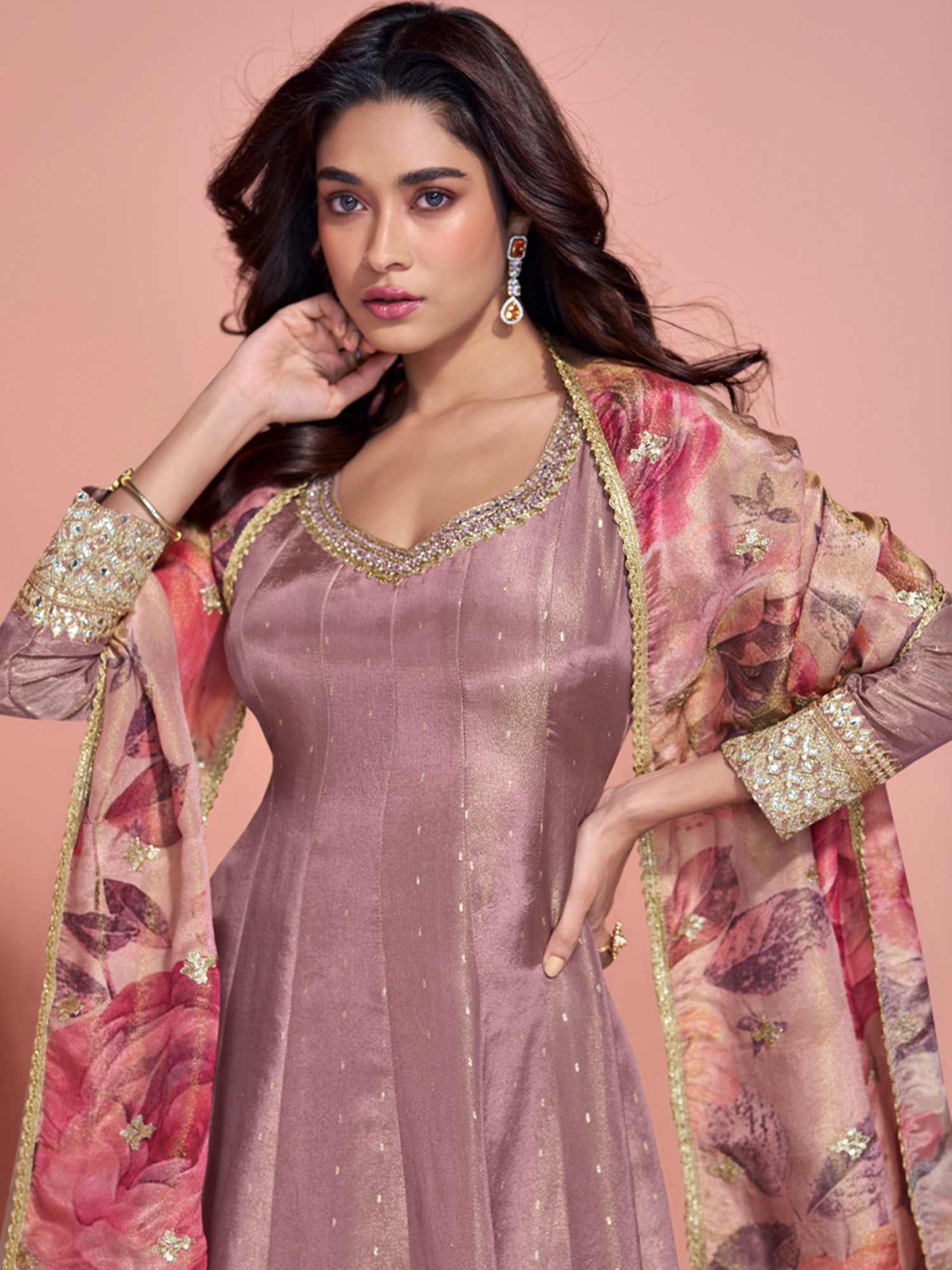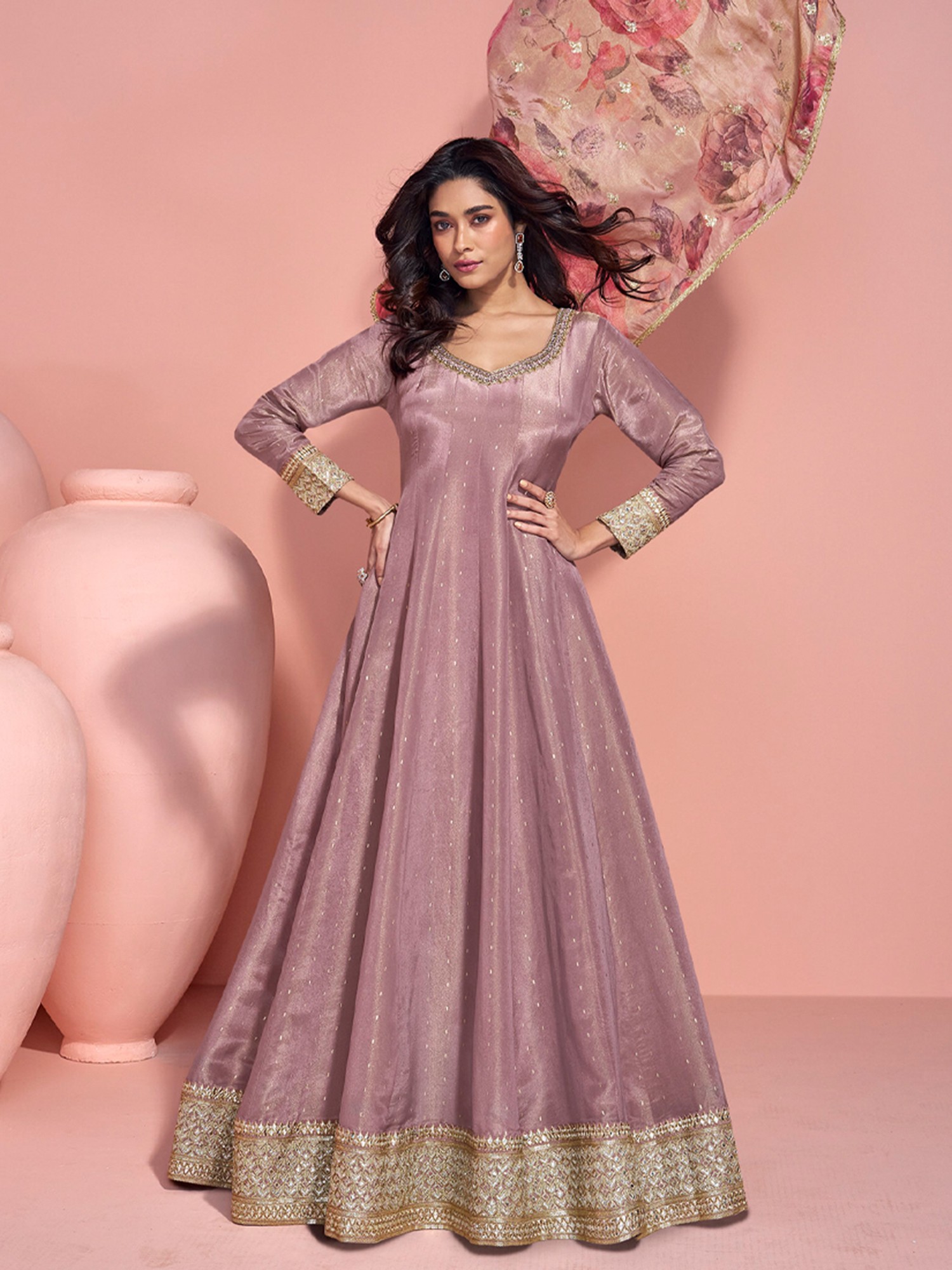This silhouette draws inspiration from the grandeur of traditional Indian attire, reinterpreted for the modern connoisseur. The Anarkali style, known for its regal presence, has graced royal courts and celebrated occasions for centuries. Embracing this piece connects you to a heritage of exquisite fashion, offering a blend of historical significance and contemporary allure.