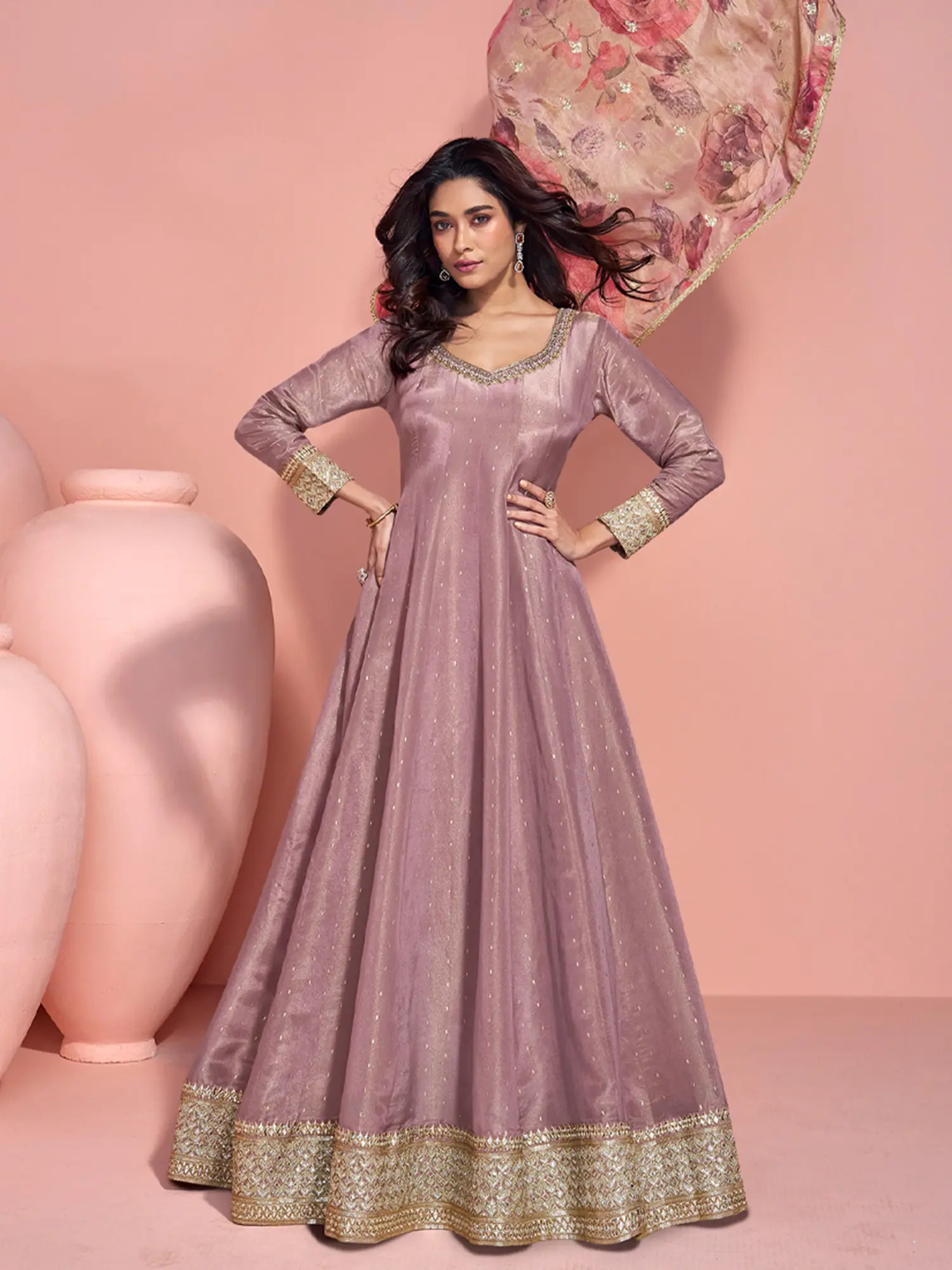 Graceful Viscose Silk Anarkali Suit with Chinon Dupatta and Intricate Thread Weaving Embroidery Work for Special Occasions