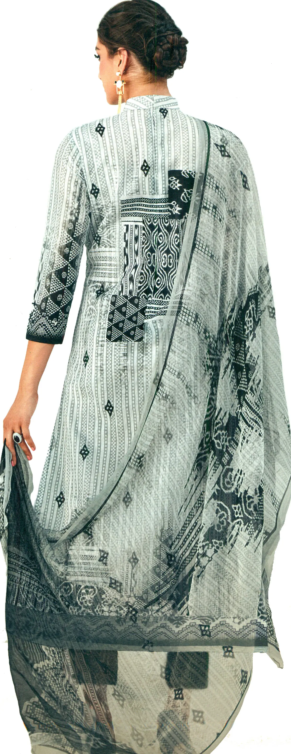 Moonbeam-Gray Digitally Printed Long Suit with Trousers and Dupatta