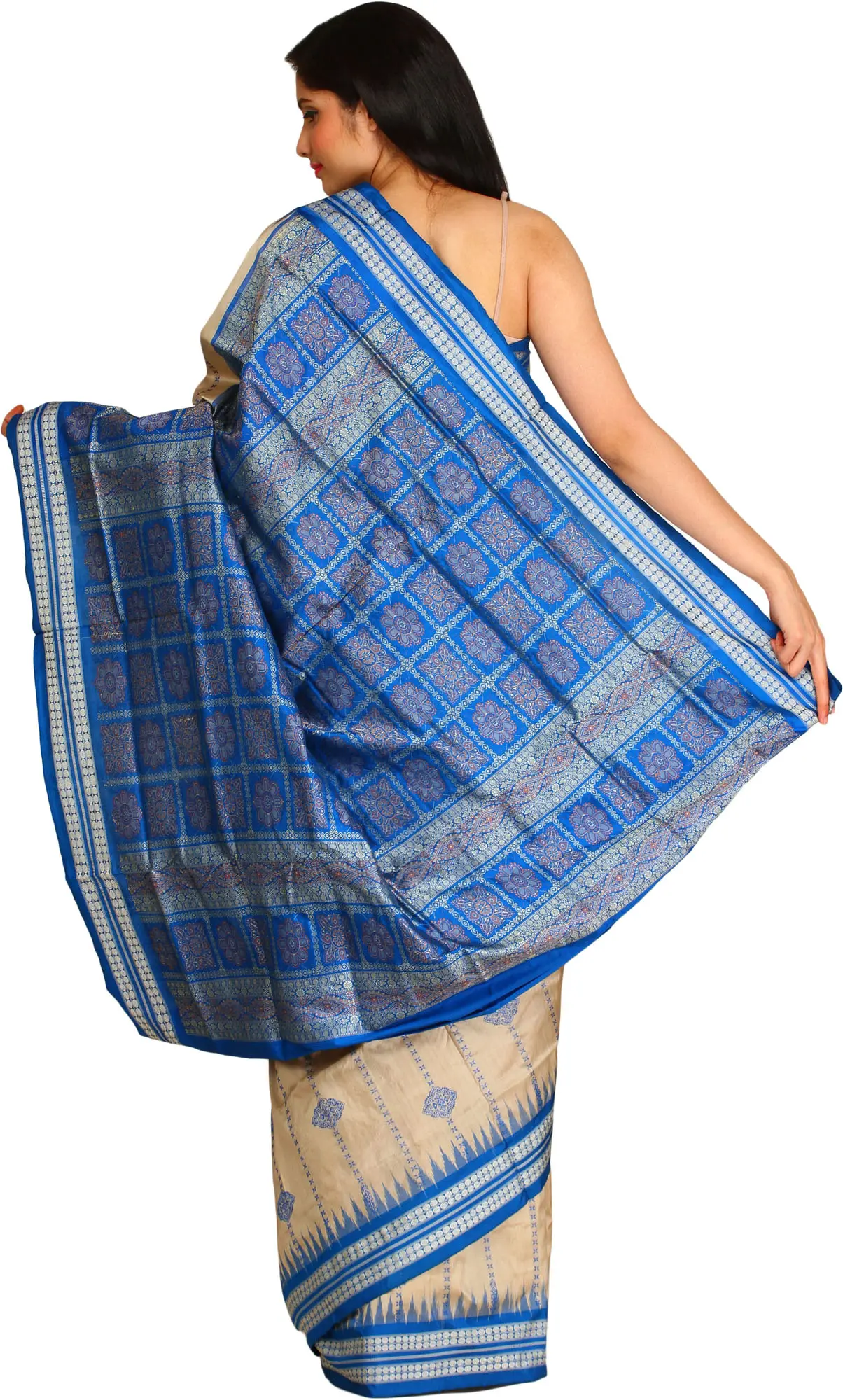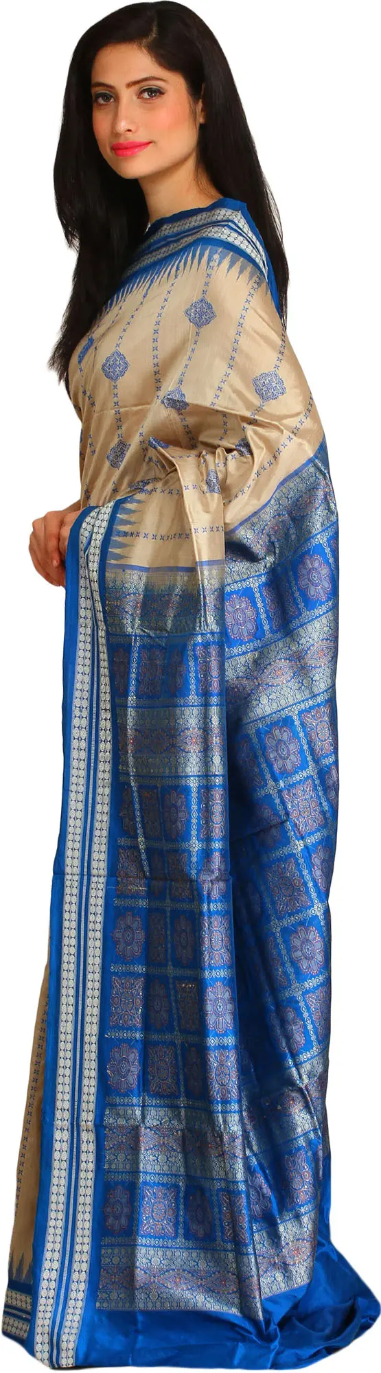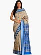 Cannoli-Cream Tussar Silk Handloom Saree with Woven Fish and Ethnic Motifs from Chhattisgarh