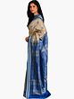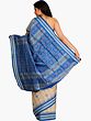 Maritime-Blue Modal Silk Printed Saree with Floral Vine Border from Madhya Pradesh