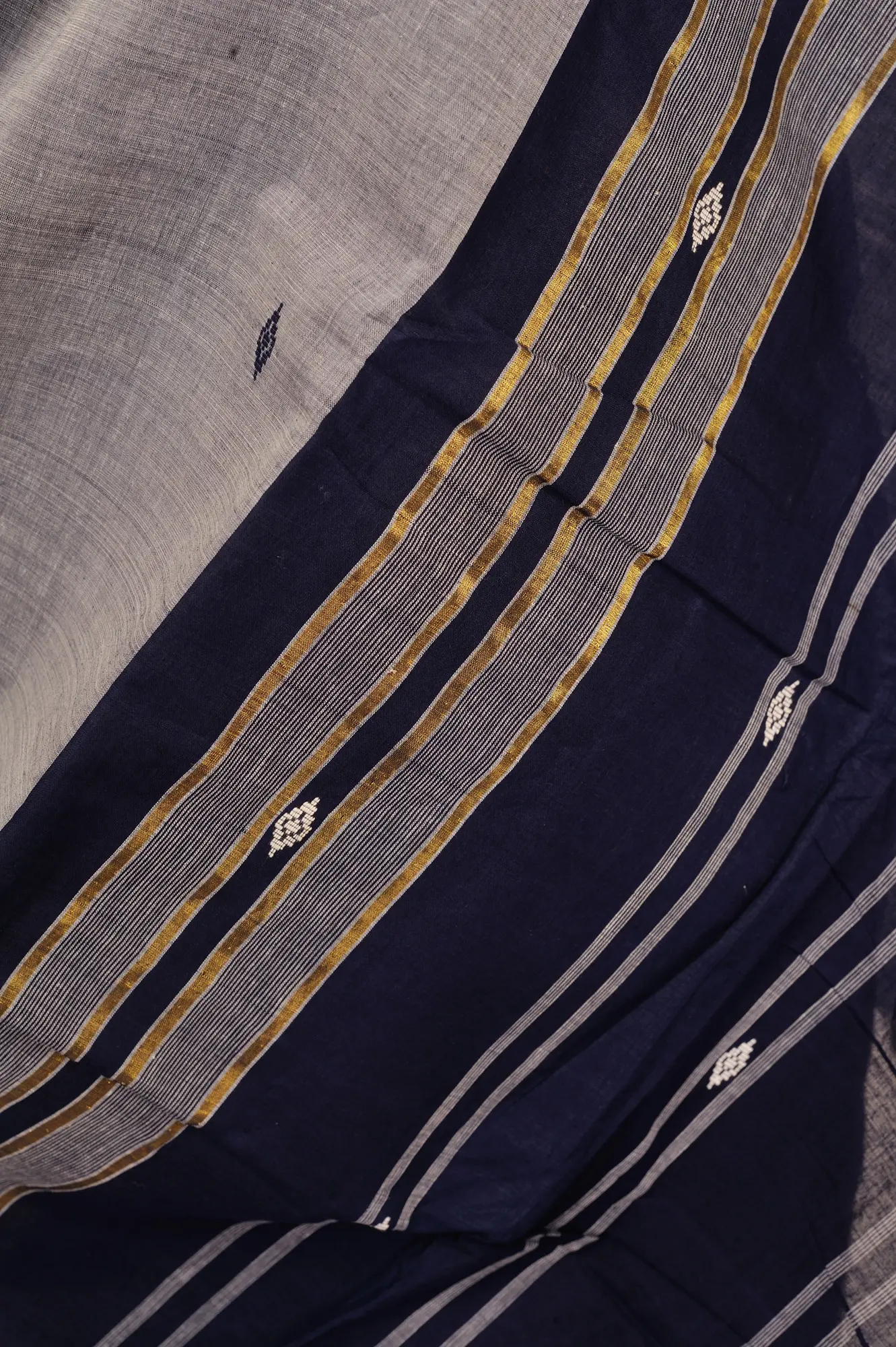 Federal-Blue Ikat Handloom Pure Cotton Saree with Woven Pair of Peacocks and Rudraksha Border from Sambhalpur