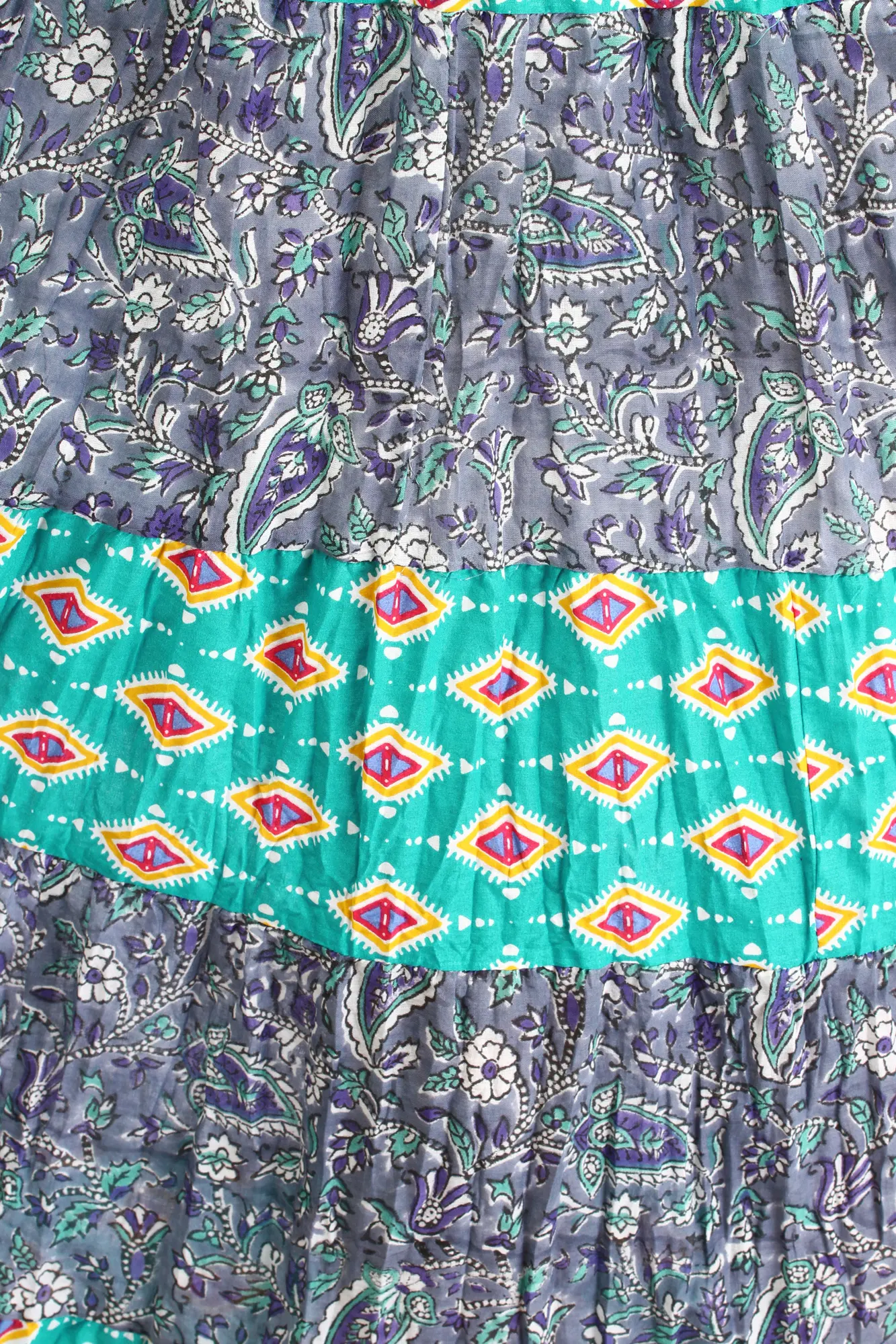 The quality of this skirt is evident in its construction. The pure cotton fabric ensures durability and easy care, while the thoughtful tiered design and intricate prints are a testament to attention to detail. The elasticated waist is neatly finished, providing a secure and comfortable fit that will last. This skirt is not just a piece of clothing; it's an expression of personal style and a commitment to comfortable, chic fashion.