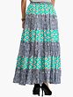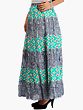 Blue and Maroon Elastic Long Skirt with Floral Print