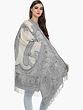 Snow White Wool Shawl: Intricate Kani Jamawar Weaving with Blooms and Paisleys