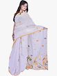 Gray Dawn Dhakai Sari from Kolkata with Hand Woven Paisleys and Flowers